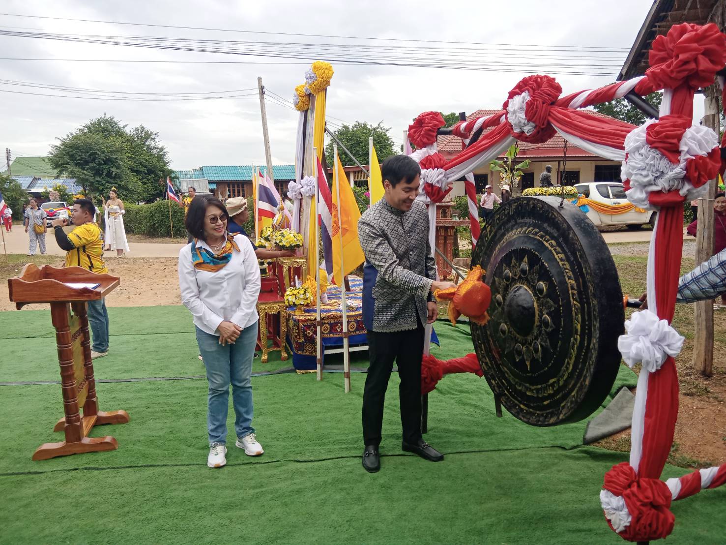 วันที่ 21 กรกฎาคม 2567 ที่วัดหนองกระทุ่ม ตำบลหนองกุ่ม อำเภอบ่อพลอย จังหวัดกาญจนบุรี นายอัครนันท์ กัณณ์กิตตินันท์ หรือ ส.ส.กอล์ฟ โฆษกคณะกรรมาธิการกระทรวงพาณิชย์ และเป็น ส.ส.กาญจนบุรี เขต 1 พรรคเพื่อไทย เป็นประธานเปิดงาน แห่เทียนและทอดผ้าป่าสามัคคี โดยมี นายสุรสิทธิ์ จันอุทา นายอำเภอบ่อพลอย กล่าวรายงาน