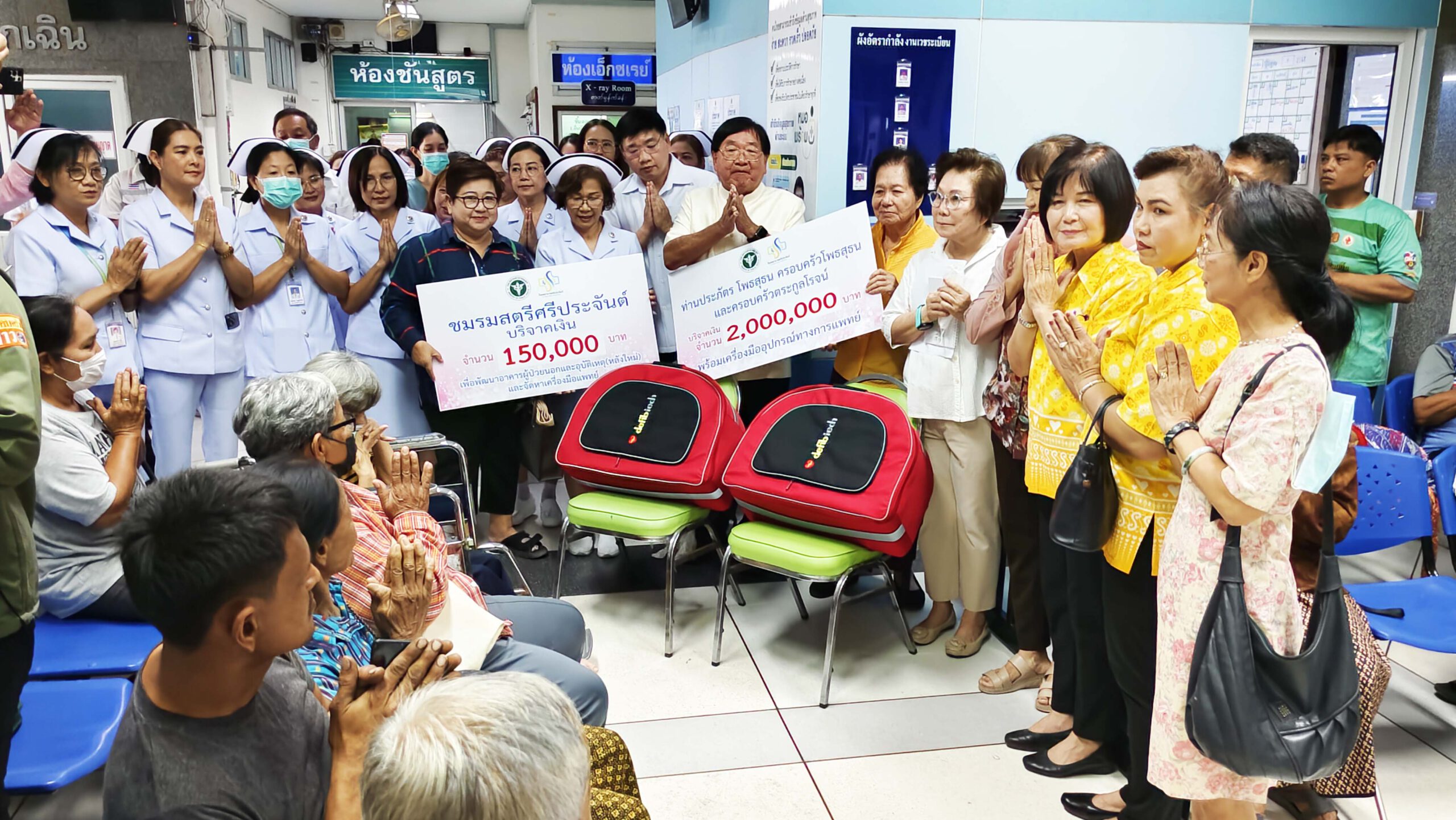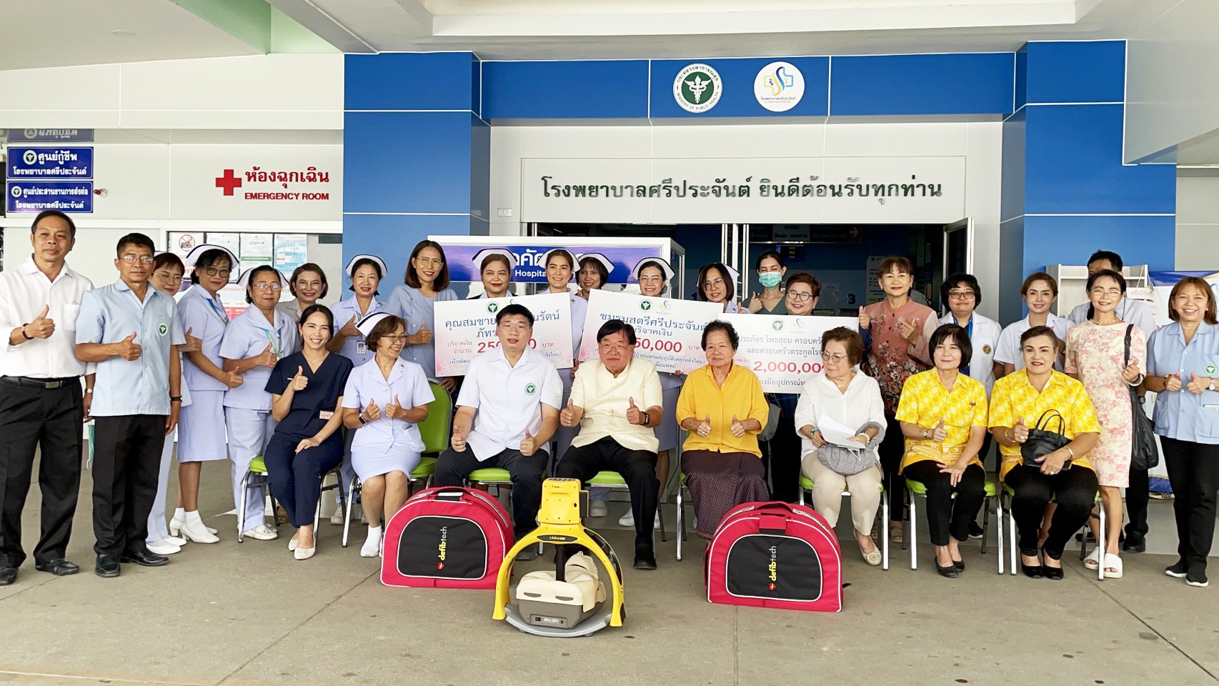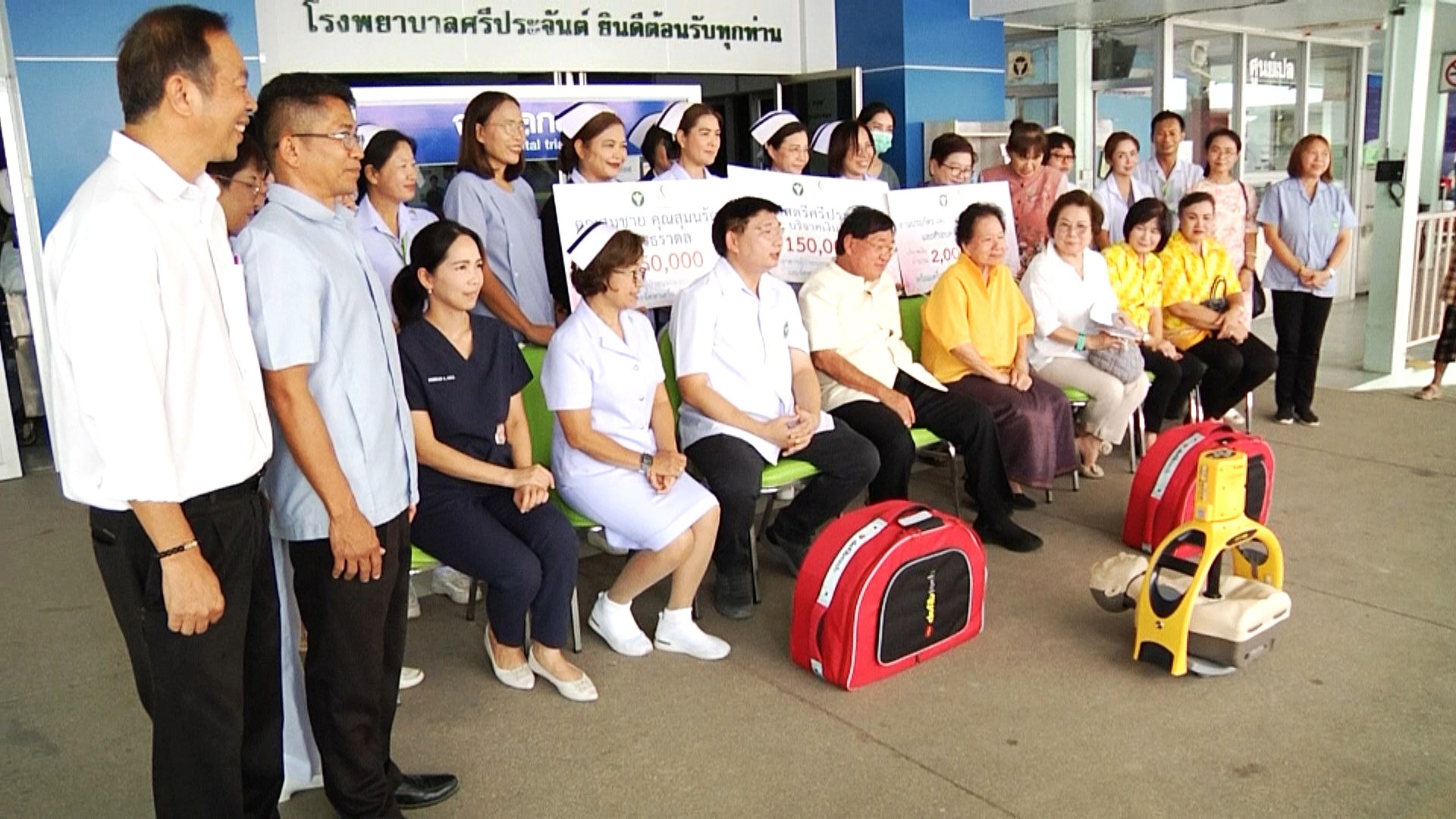 สุพรรณบุรี อดีตรมช.ประภัตร พร้อมครอบครัวโพธสุธน มอบอุปกรณ์การแพทย์ให้โรงพยาบาลศรีประจันต์