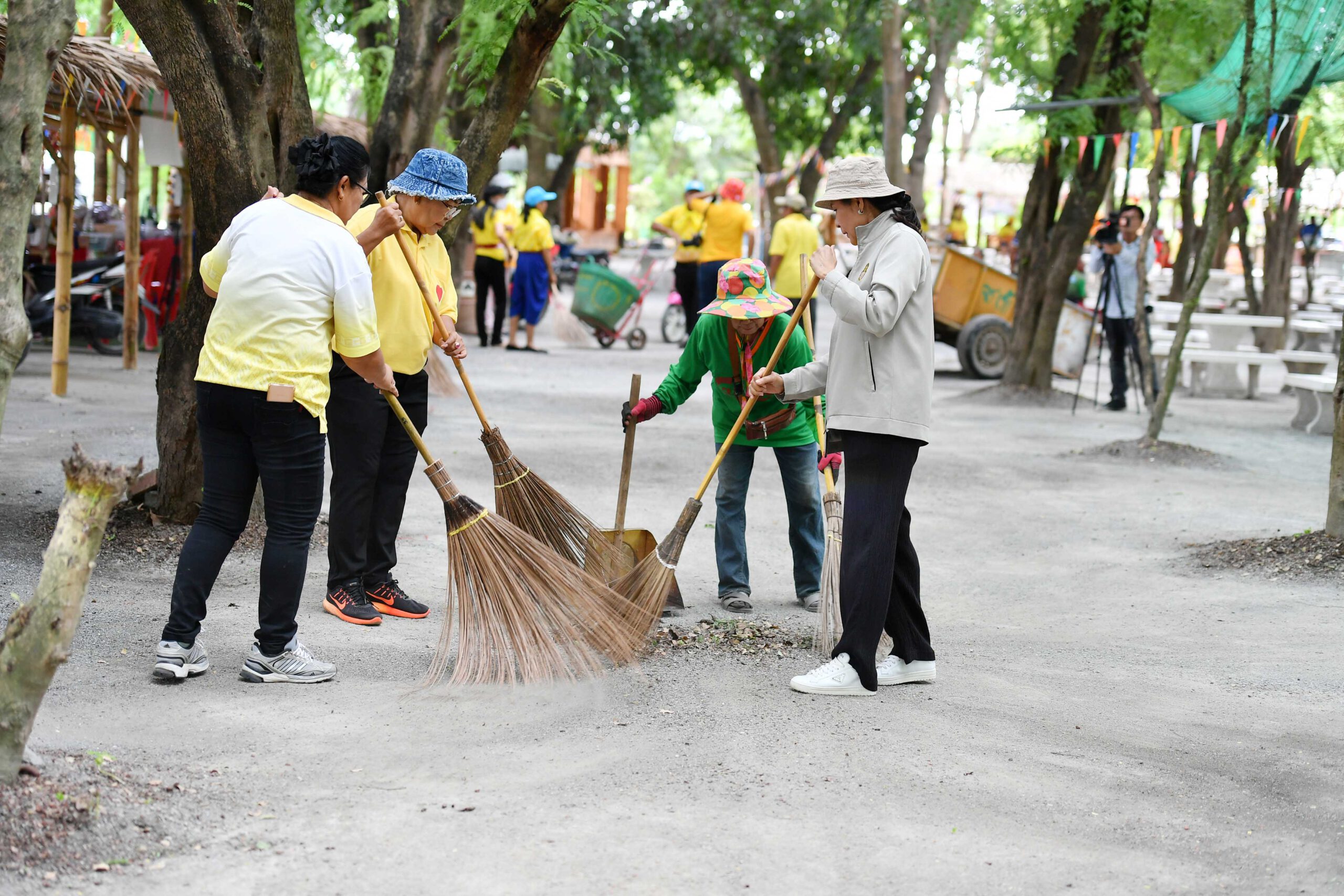 สุพรรณบุรี สตรีอู่ทองร่วมจิตอาสาจัดกิจกรรมบำเพ็ญประโยชน์ถวายเป็นพระราชกุศลยายวัย79ปีร่วมกิจกรรม