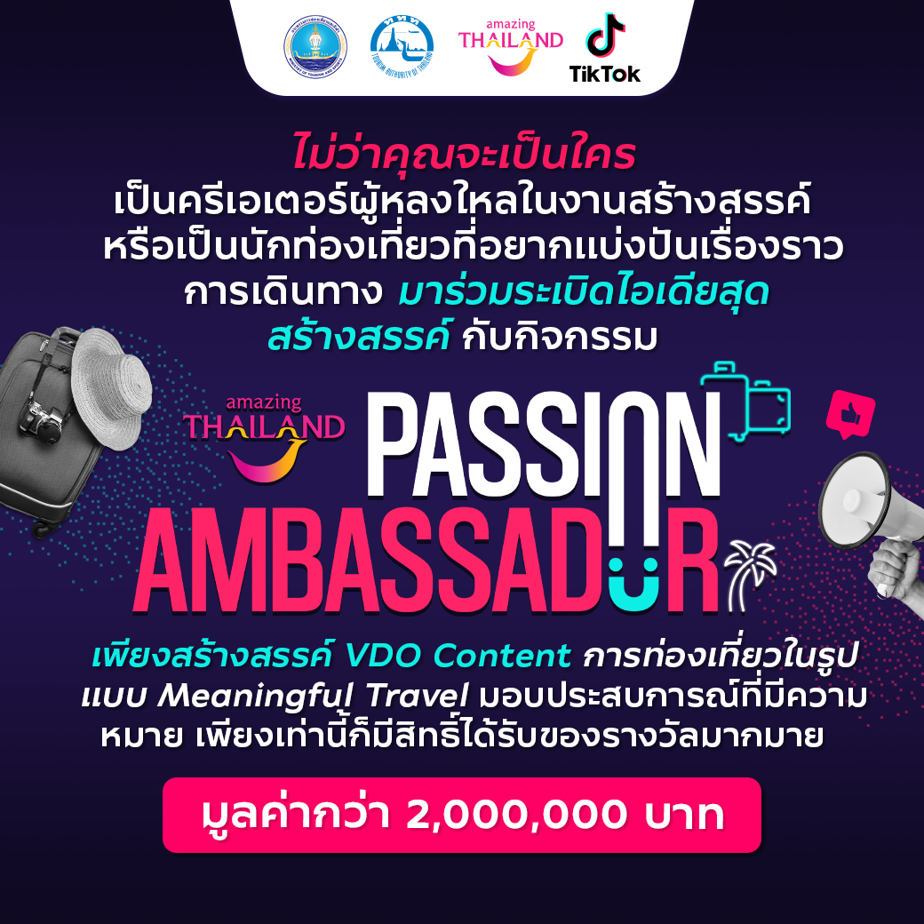 ททท. ชวนร่วมเป็น Ambassador การท่องเที่ยว ผ่านกิจกรรม Amazing Thailand Passion Ambassador ลุ้นรางวัลกว่า 2,000,000 บาท