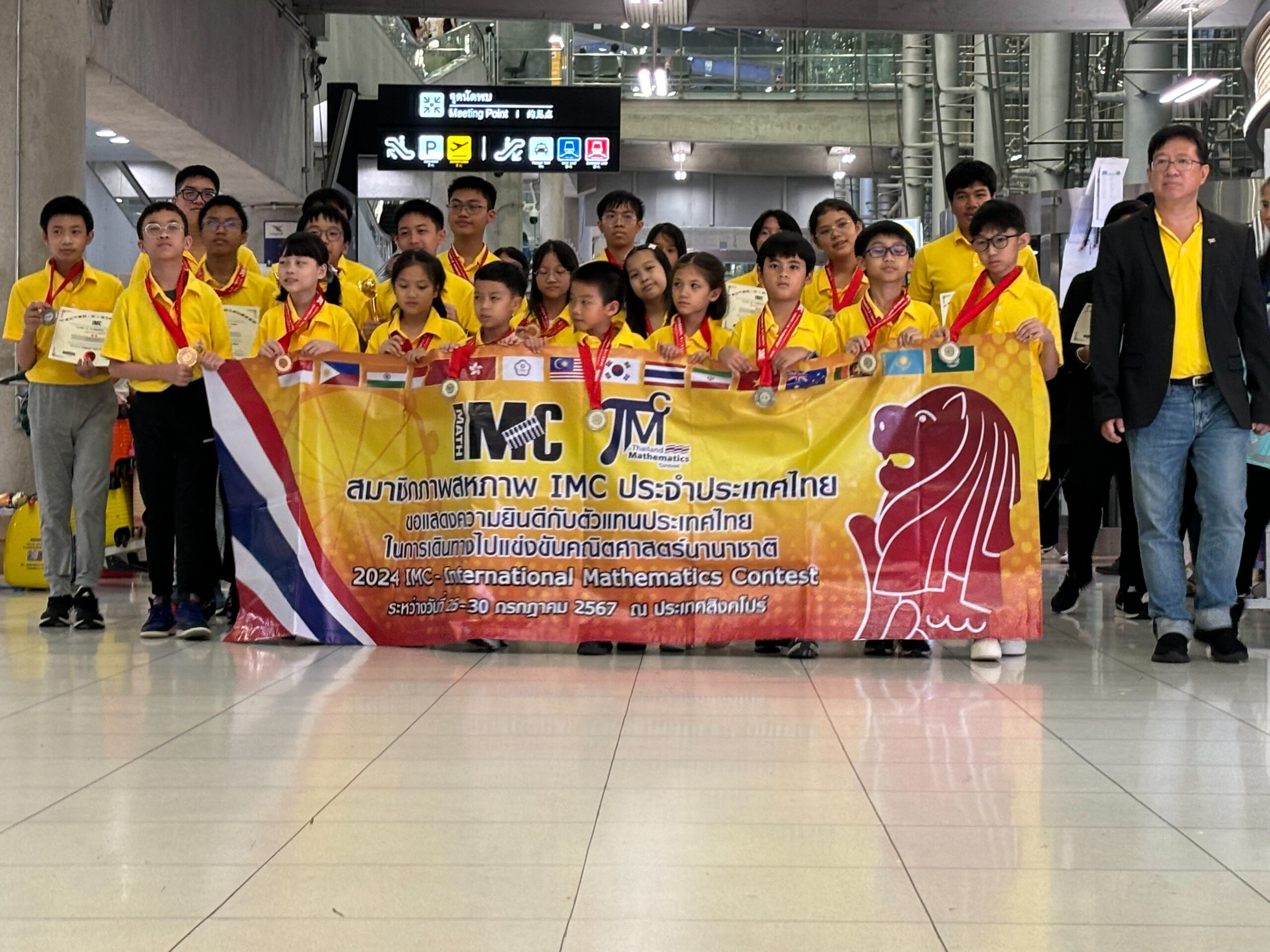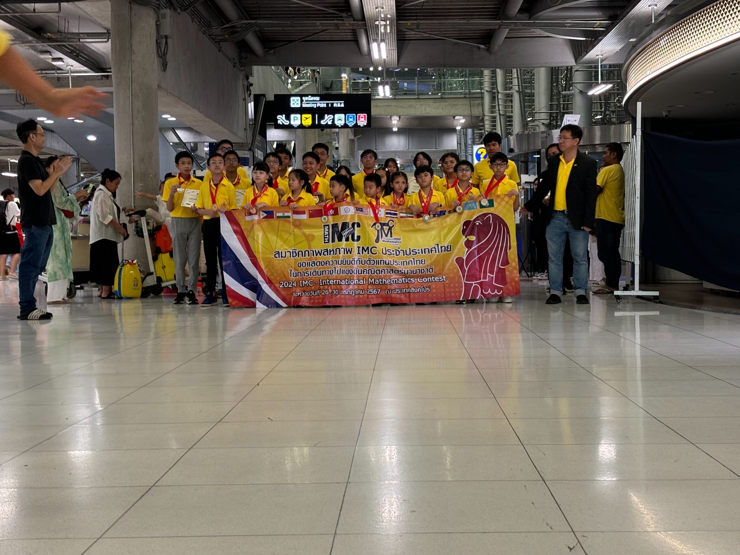 *****เมื่อเวลา 23.30 น.วันที่ 30 ก.ค.2567 ที่ สนามบินสุวรรณภูมิ นายภูมิเทพ คลังอุไร ประธานโครงการแข่งขันคณิตศาสตร์ประเทศไทย (TMC – Thailand Mathematics Contest) และ Vice President IMC Union พร้อมคณะ เดินทางกลับถึงประเทศไทย เที่ยวบิน TG 410 เครื่องลง 22.23 น.หลังจากพาคณะเด็กนักเรียน ไปเข้าร่วมการแข่งขันคณิตศาสตร์นานาชาติ 2024 IMC – International Mathematics Contest ณ ประเทศสิงคโปร์ระหว่างวันที่ 26 – 30 กรกฎาคม 2567 เด็กจากประเทศไทยสามารถคว้ามาได้ 2 รางวัลแชมเปี้ยน 5 รางวัลเหรียญทอง 9 รางวัลเหรียญเงิน 7 รางวัลเหรียญทองแดง และ 3 รางวัลชมเชย โดยมีผู้ปกครองและคณะครูมาคอยต้อนรับและร่วมแสดงความยินดี