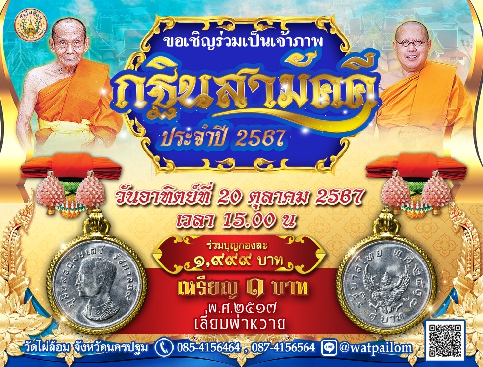 กฐินวัดไผ่ล้อม แจกเหรียญครุฑ 1 บาท ของเดิมหลวงพ่อพูล