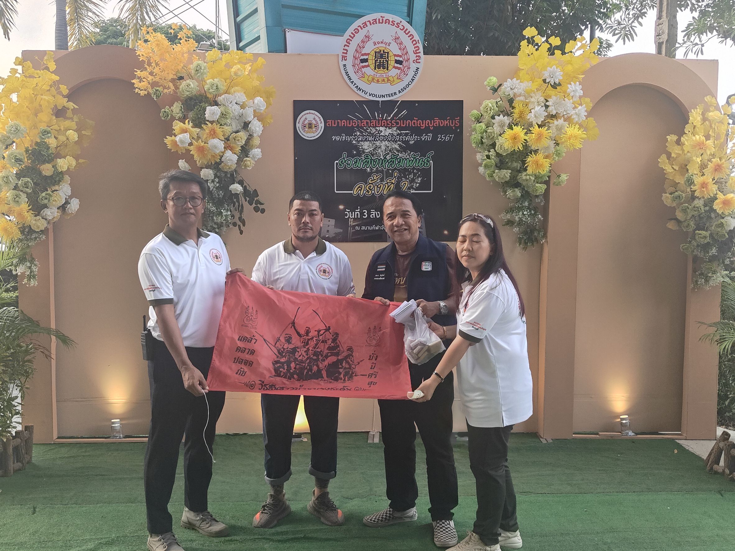 ในวันเสาร์ที่ 3 สิงหาคม 2567 ณ อาคารเอนกประสงค์องค์การบริหารส่วนจังหวัดสิงห์บุรี (สนามกีฬาจังหวัดสิงห์บุรี) และมีกิจกรรมจับฉลากและส่งมอบอุปกรณ์กู้ชีพกู้ภัยและของที่ระลึกกับผู้ร่วมกิจกรรม และมี ท่าน สว.ชีวะภาพ ชีวะธรรม ท่าน สส.โชติวุฒิ ธนาคมานุสรณ์ ท่านนายกเทศบาลเมืองสิงห์บุรี นายณรงค์ศักดิ์ วิงวอน ท่านรองปลัด อบจ.นายเสรี ยอดระยับ (ตัวแทนท่านนายก อบจ.) ท่านนายกสมาคมชาวตลาดสิงห์บุรี นายสมชาย จั่นฮวด นายเอกพันธ์ บรรลือฤทธิ์(ดารา2) หัวหน้าอาสาสมัครมูลนิธิร่วมกตัญญู นายปฏิญญา(โบ๊ท) วิบูลย์นันท์ และแขกผู้มีเกียรติให้เกียรติร่วมในพิธีเป็นจำนวนมาก