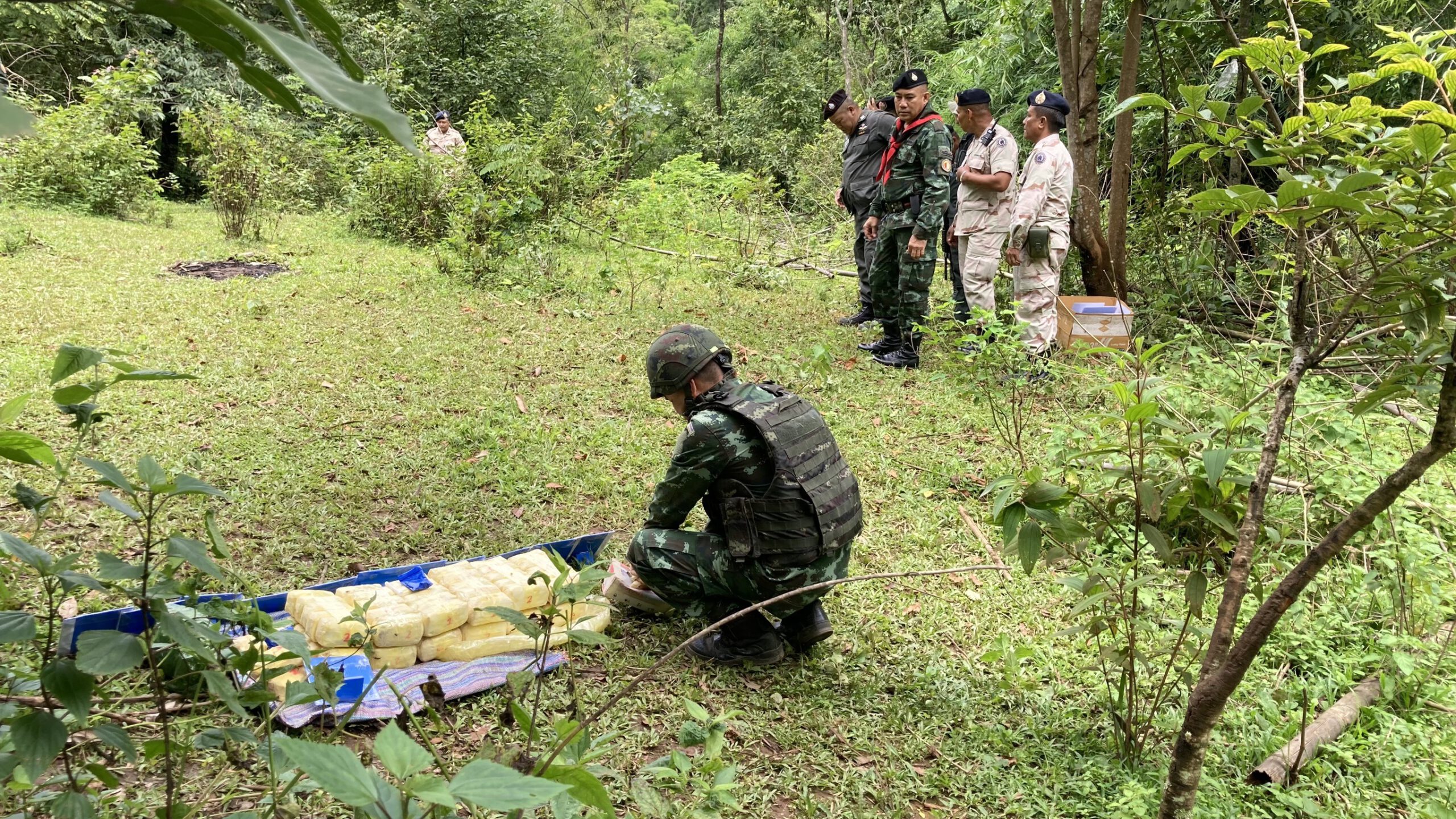 เมื่อ 7 ส.ค. 67 เวลา 10.00 น.บก กองบังคับกองควบคุมผาดำหน่วยเฉพาะกิจไชยานุภาพ โดย ร้อย.ม.4 ฉก.ไชยานุภาพ ได้รับแจ้งจากแหล่งข่าวในพื้นที่ว่ากลุ่มขบวนการค้ายาเสพติด จะทำการลักลอบลำเลียงยาเสพติดจากประเทศเพื่อนบ้านเข้ามายังเขตประเทศไทยในพื้นที่รับผิดชอบ หน่วยจึงได้จัดกำลัง 1 ชป. ทำการ ลว.เฝ้าตรวจ บริเวณพื้นที่ป่าท้ายหมู่บ้าน บ.หนองเต่า ต.ม่อนปิ่น อ.ฝาง จว.ช.ม. ตรวจพบกลุ่มบุคคลต้องสงสัย ประมาณ 2 – 3 คน แบกเป้สะพายหลัง เดินลัดเลาะมาตามภูมิประเทศ ชป.จึงได้แจ้งเตือนให้หยุดเพื่อขอทำการตรวจค้น แต่กลุ่มบุคคลดังกล่าว ได้ใช้อาวุธไม่ทราบชนิดยิงใส่ฝ่ายเรา จนเกิดการปะทะกัน ประมาณ 5 นาที หลังจากเหตุการณ์สงบ หน่วยได้เข้าทำการตรวจสอบพื้นที่ขั้นต้น ฝ่ายเราปลอดภัย และตรวจพบกระเป๋าเป้ดัดแปลง จำนวน 1 ใบ ปัจจุบันหน่วยได้ทำการวางกำลังควบคุมพื้นที่ปะทะ เพื่อรอการพิสูจน์ทราบ