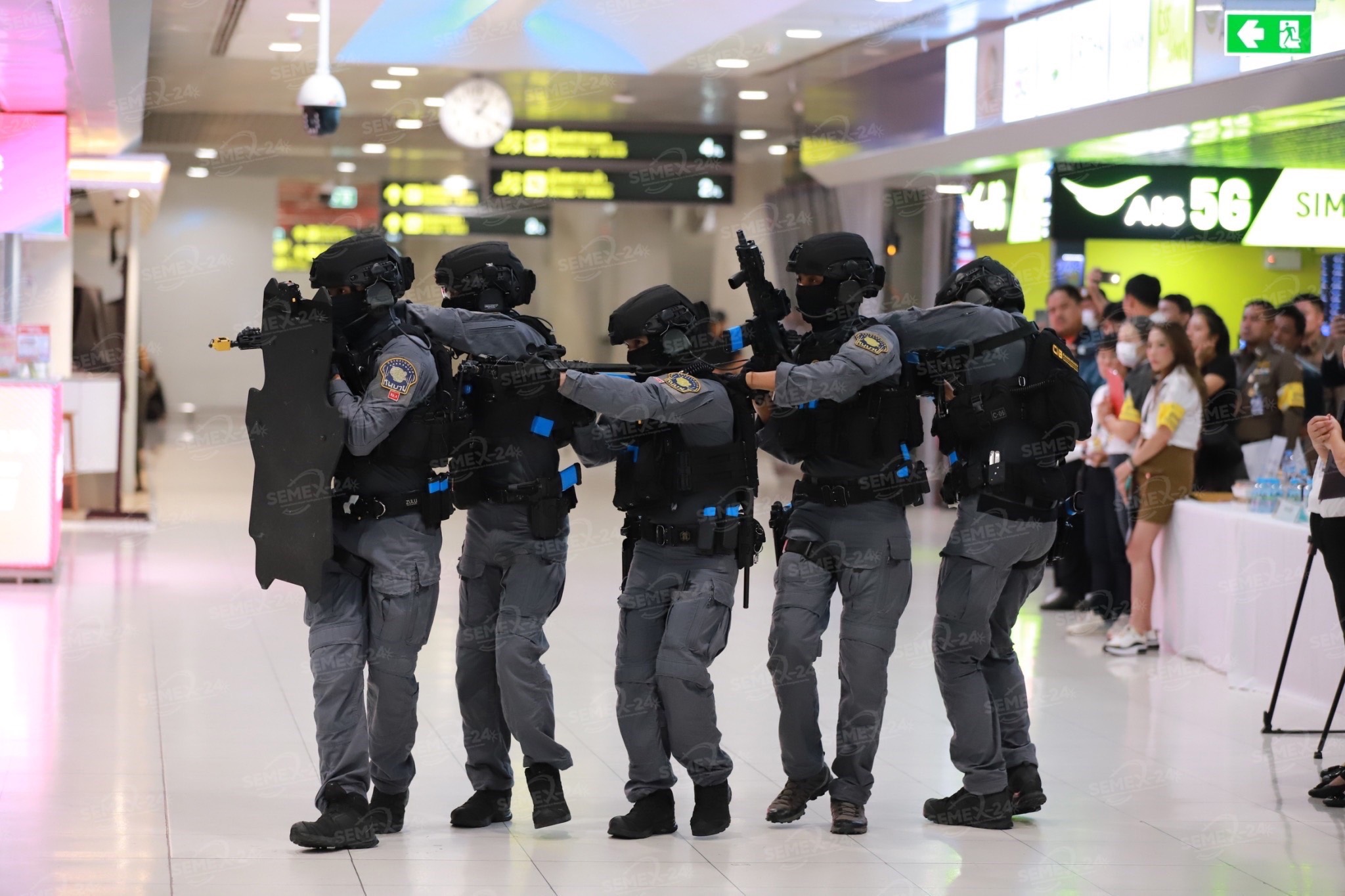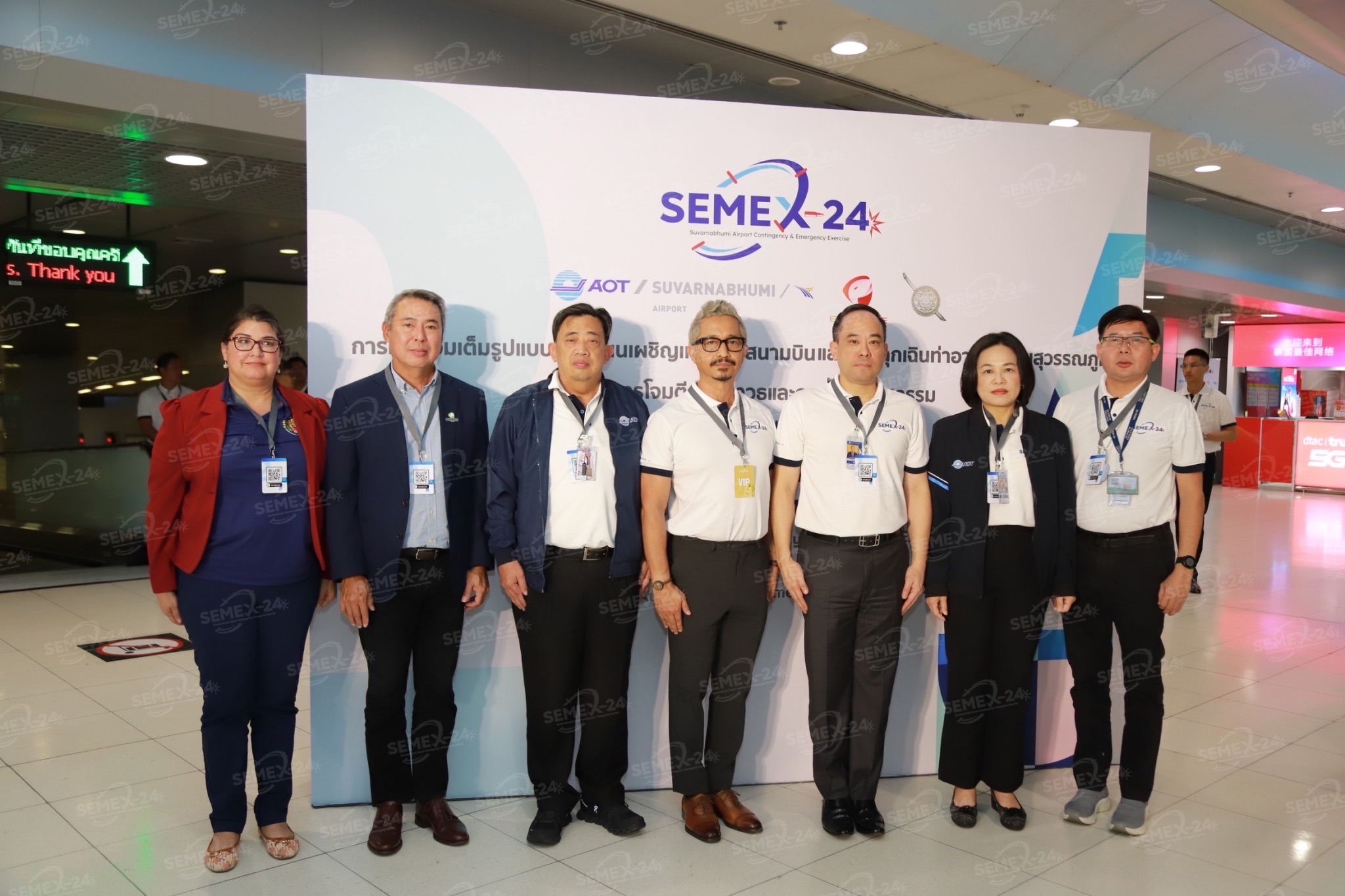 ท่าอากาศยานไทย จำกัด (มหาชน) (ทอท.) เป็นประธานในพิธีเปิดการจัดฝึกซ้อมเต็มรูปแบบ (Full Scale Exercise) ตามแผนเผชิญเหตุของสนามบินและแผนฉุกเฉิน ทสภ. ประจำปี 2567 (SEMEX – 24) โดยในปีนี้ท่าอากาศยานสุวรรณภูมิ (ทสภ.) ได้จำลองสถานการณ์เสมือนจริง กรณีการโจมตีด้วยอาวุธและการก่อวินาศกรรม หัวข้อการกราดยิง ซึ่งเป็นการบูรณาการการฝึกซ้อมร่วมกันของหน่วยงาน อาทิ หน่วยปฏิบัติการพิเศษหนุมาน กองบัญชาการตำรวจสอบสวนกลาง สถานีตำรวจภูธรท่าอากาศยานสุวรรณภูมิ บริษัท เอเชีย เอรา วัน จำกัด บริษัท วิทยุการบินแห่งประเทศไทย จำกัด หน่วยงานสาธารณสุขจังหวัดสมุทรปราการ พร้อมด้วยส่วนงานของ ทสภ. ตามแผนเผชิญเหตุของสนามบิน โดยทำการฝึกซ้อมฯ บริเวณชั้น B อาคารผู้โดยสาร พื้นที่เชื่อมต่อและพื้นที่จำหน่ายตั๋วของสถานีรถไฟฟ้าสุวรรณภูมิ