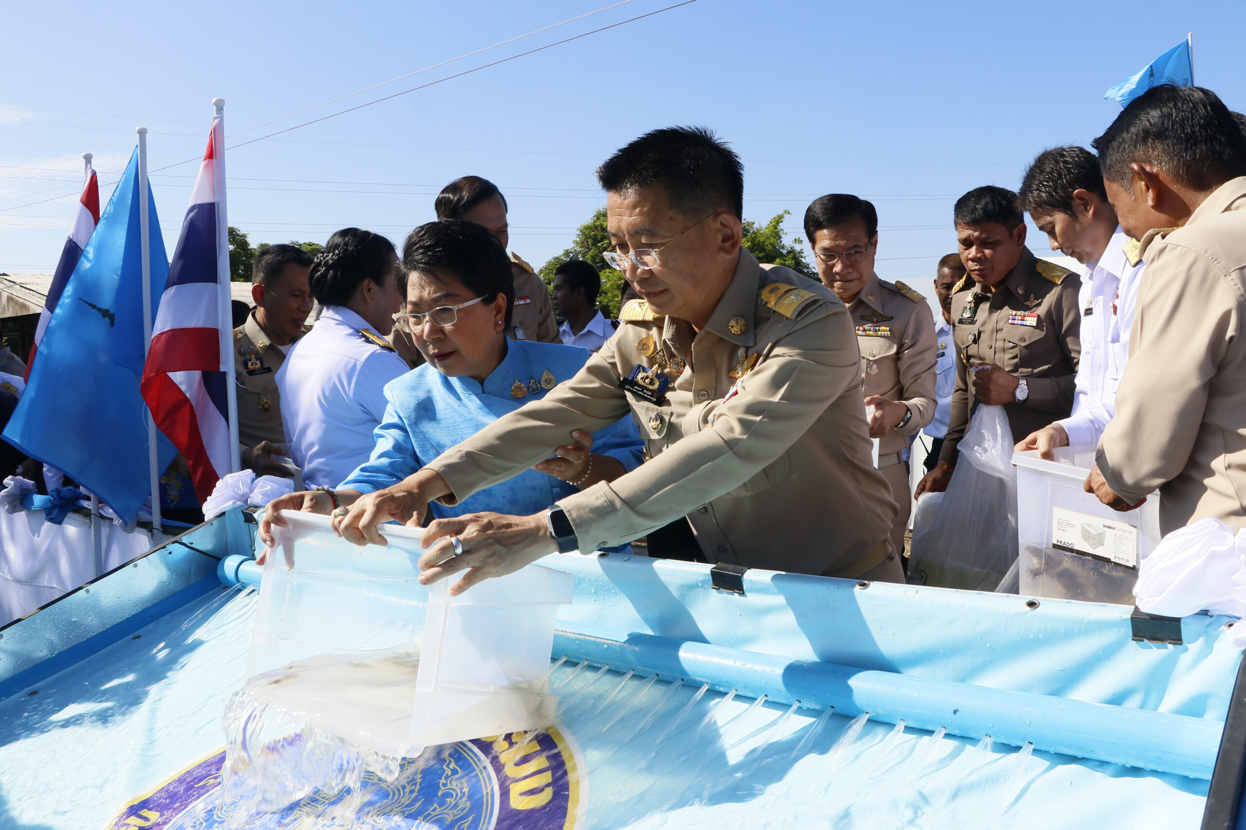สิงห์บุรี ประมงจังหวัดจัดพิธีปล่อยพันธุ์สัตว์น้ำ เฉลิมพระชนมพรรษาพระบรมราชชนนีพันปีหลวง