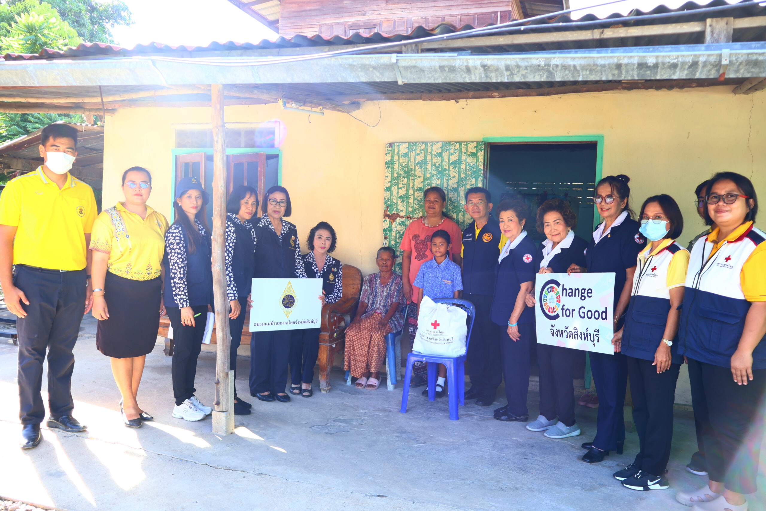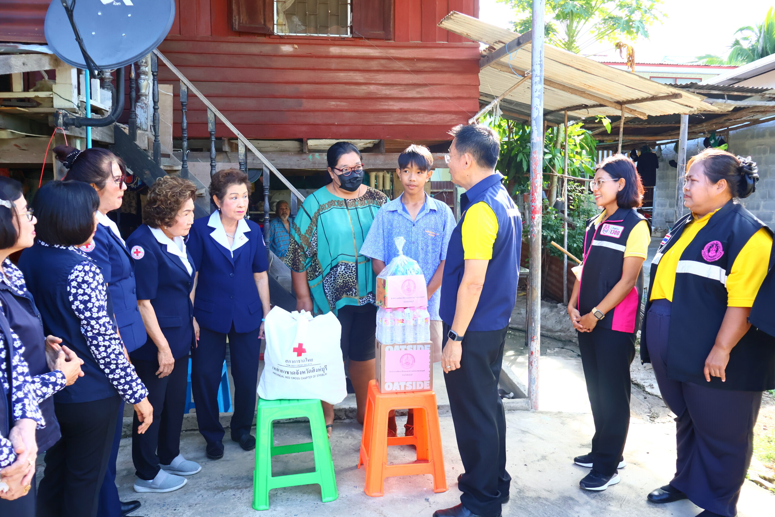 ทั้งนี้ สำนักงานเหล่ากาชาดจังหวัดสิงห์บุรีได้สนับสนุนเครื่องอุปโภคบริโภค รายละ 1 ชุด และสํานักงานพัฒนาสังคม