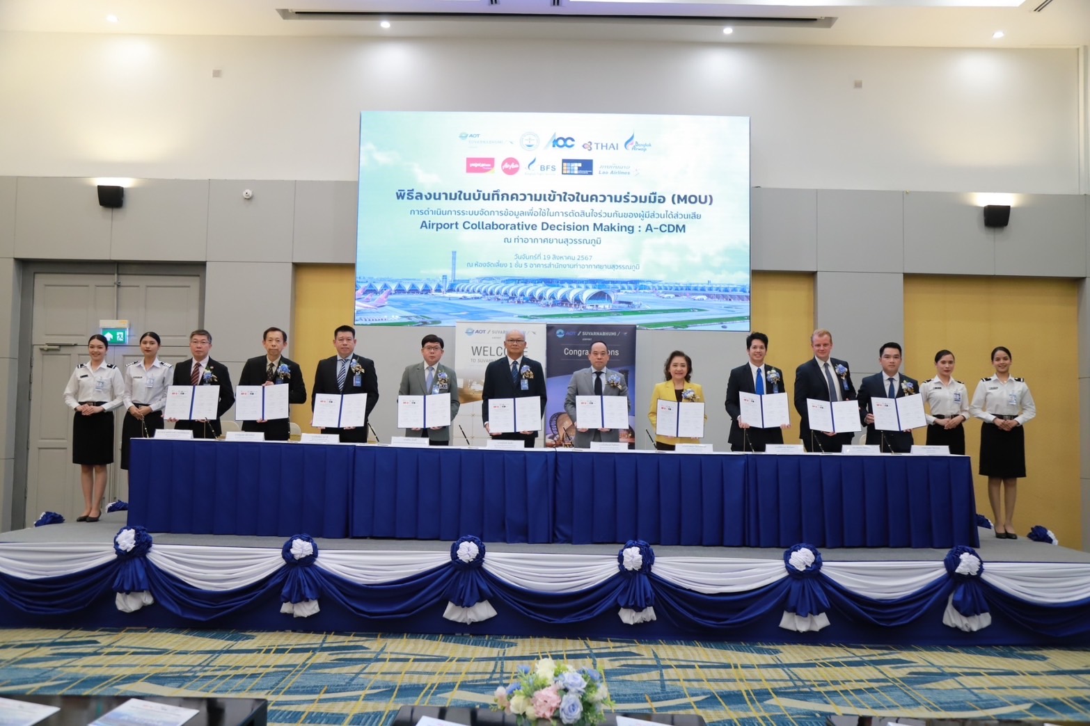 สมุทรปราการ ท่าอากาศยานสุวรรณภูมิจับมือ 9 พันธมิตรด้านการบิน ลงนาม MOU ระบบ A-CDM ยกระดับประสิทธิภาพการบริหารจัดการท่าอากาศยาน