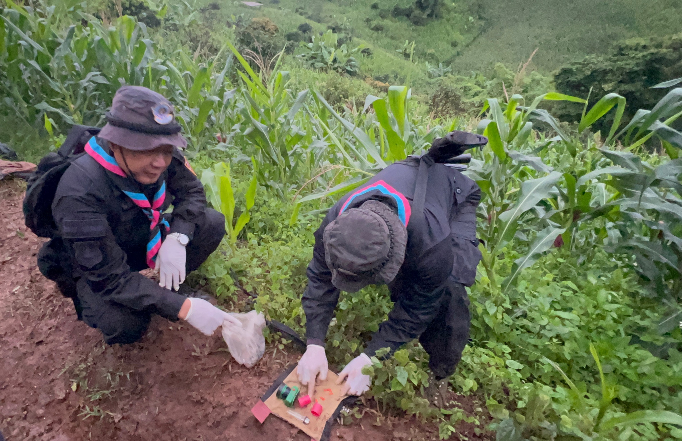 รวมของกลางยาเสพติดให้โทษประเภทที่ 1 (ยาบ้า) จำนวน 220,012 เม็ด และฝิ่นดิบ จำนวน 1 ก้อน และได้พบร่องรอยการวิ่งหลบหนีของกลุ่มขบวนการฯ ข้ามกลับไปยังฝั่งประเทศเพื่อนบ้าน