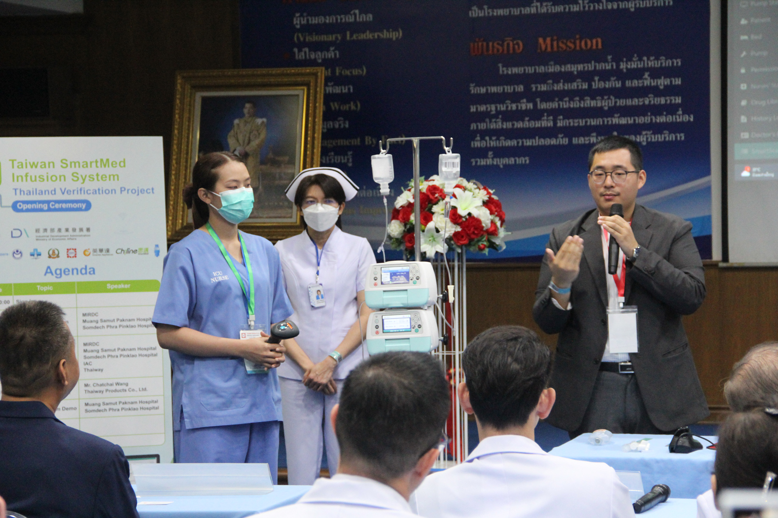 *****Mr.Bol-Wei Huang (นาย หวง ป๋อเว่ย)รองผู้อำนวยการศูนย์วิจัยและพัฒนาอุตสาหกรรมโลหะ(MIRDC)กล่าวว่าผลิตภัณฑ์ทางการแพทย์ของไต้หวันมีคุณภาพยอดเยี่ยมและรัฐบาลไต้หวันกำลังสนับสนุนผู้ผลิตในการขยายตลาดไปต่างประเทศโครงการนี้เน้นการตรวจสอบความปลอดภัยในการให้สารละลายในโรงพยาบาลประเทศไทยและประเมินประสิทธิภาพของระบบ “Smart Med Infusion” จากมุมมองของฟังก์ชันและความพึงพอใจซึ่งไม่เพียงแต่ส่งเสริมการแบ่งปันและแลกเปลี่ยนเทคโนโลยีทางการแพทย์ระหว่างประเทศแต่ยังเป็นหลักฐานประเมินประโยชน์ของโซลูชันการแพทย์อัจฉริยะของไต้หวันและเป็นตัวอย่างความสำเร็จในการผนวกรวมและส่งออกระบบอุปกรณ์การแพทย์อัจฉริยะของไต้หวัน