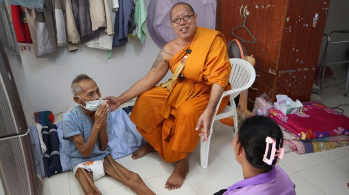 หลวงพี่น้ำฝน ชื่นชมเข้าช่วยหญิงกตัญญู มอบเตียงผู้ป่วย ดูแลพ่อนอนติดเตียง
