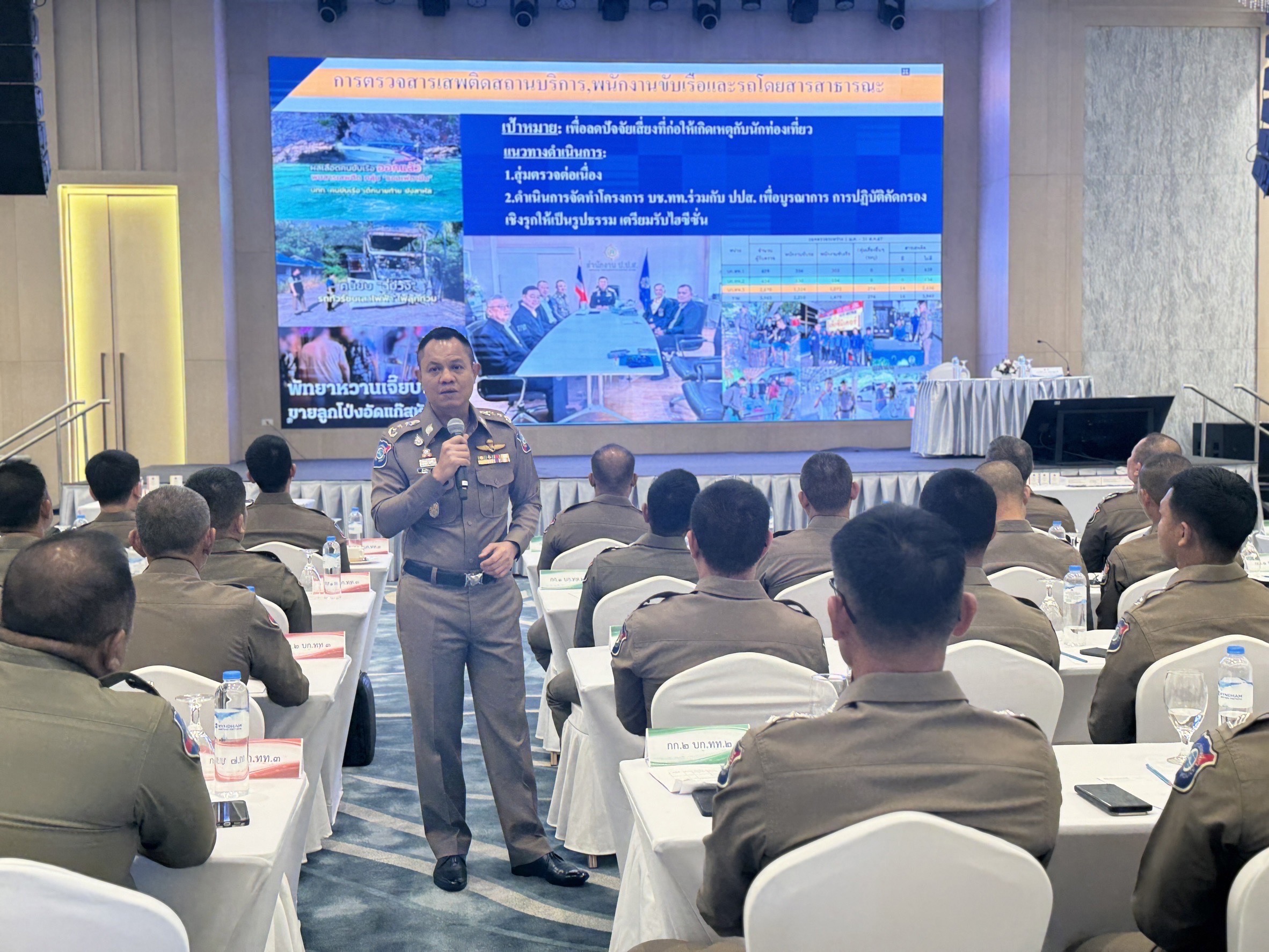 เพื่อขับเคลื่อนการปฏิบัติตามนโยบายรัฐบาลที่ให้ความสำคัญเรื่องความปลอดภัยแก่นักท่องเที่ยว อีกทั้งเป็นการป้องกันอุบัติภัยทางบกและทางทะเลเชิงรุก กองบัญชาการตำรวจท่องเที่ยว โดย พล.ต.ท.ศักย์ศิรา เผือกอ่ำ ผบช.ทท. จึงได้ร่วมกับ สำนักงานป้องกันและปราบปรามยาเสพติด โดย พล.ต.ท.ภาณุรัตน์ หลักบุญ เลขาธิการ ปปส. จัดโครงการฝึกอบรมหลักสูตร ” พัฒนาศักยภาพตำรวจท่องเที่ยวด้านการป้องกันและปราบปรามยาเสพติดในวงจรการท่องเที่ยว ” ให้กับข้าราชการตำรวจท่องเที่ยวจาก ๓๒ สถานีตำรวจท่องเที่ยวทั่วประเทศ รวม ๒๒๐ นาย ระหว่างวันที่ ๑ – ๓ กันยายน ๒๕๖๗ ณ โรงแรมวินด์แฮม จอมเทียน พัทยา จว.ชลบุรี เพื่อเพิ่มประสิทธิภาพในการปฏิบัติหน้าที่ และบังคับใช้กฎหมายของตำรวจท่องเที่ยวด้านการป้องกันและแก้ไขปัญหายาเสพติดในแหล่งท่องเที่ยว โดยบูรณาการ กับหน่วยงานที่เกี่ยวข้องในพื้นที่ทั้งตำรวจภูธร ตำรวจทางหลวง สำนักงานขนส่ง สำนักงานสาธารณสุข ฝ่ายปกครอง สำนักงานเจ้าท่า ตลอดจนประสานขอความร่วมมือจากภาคธุรกิจเอกชนผู้ประกอบกิจการเรือโดยสาร รถทัวร์ รถรับจ้างสาธารณะที่ให้บริการแก่นักท่องเที่ยว สุ่มตรวจสารเสพติดในปัสสาวะ รวมถึงสมรรถภาพร่างกายพนักงานขับเรือ ขับรถโดยสารสาธารณะ เพื่อป้องกันเหตุที่จะเกิดกับนักท่องเที่ยวและประชาชนให้ครอบคลุมพื้นที่ทั่วประเทศ