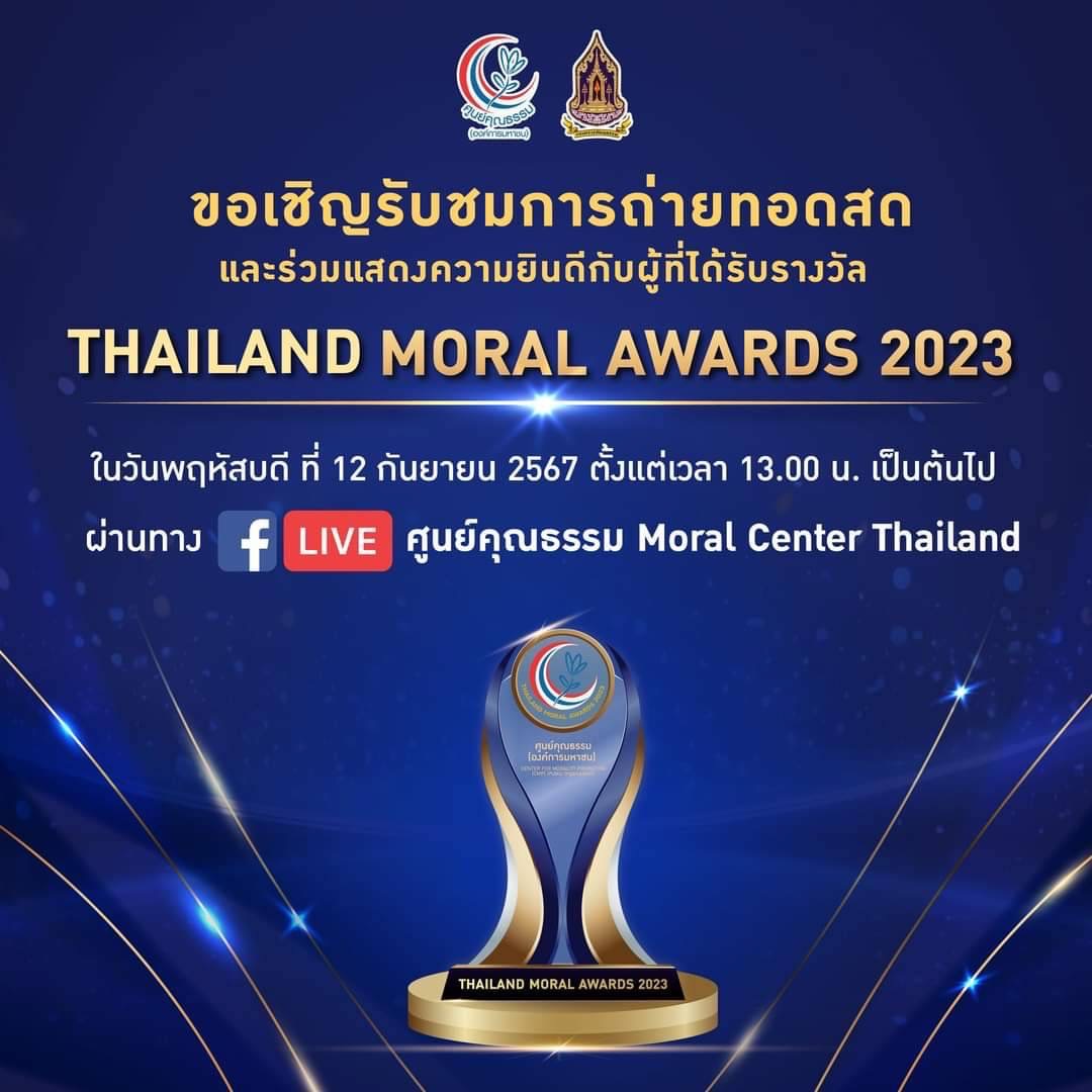 ศูนย์คุณธรรม (องค์การมหาชน) กระทรวงวัฒนธรรม ประกาศผลรางวัล Thailand Moral Awards 2023 ไทยแลนด์คุณธรรมอวอร์ด รางวัลสะท้อนคุณธรรมเชิงพฤติกรรม
