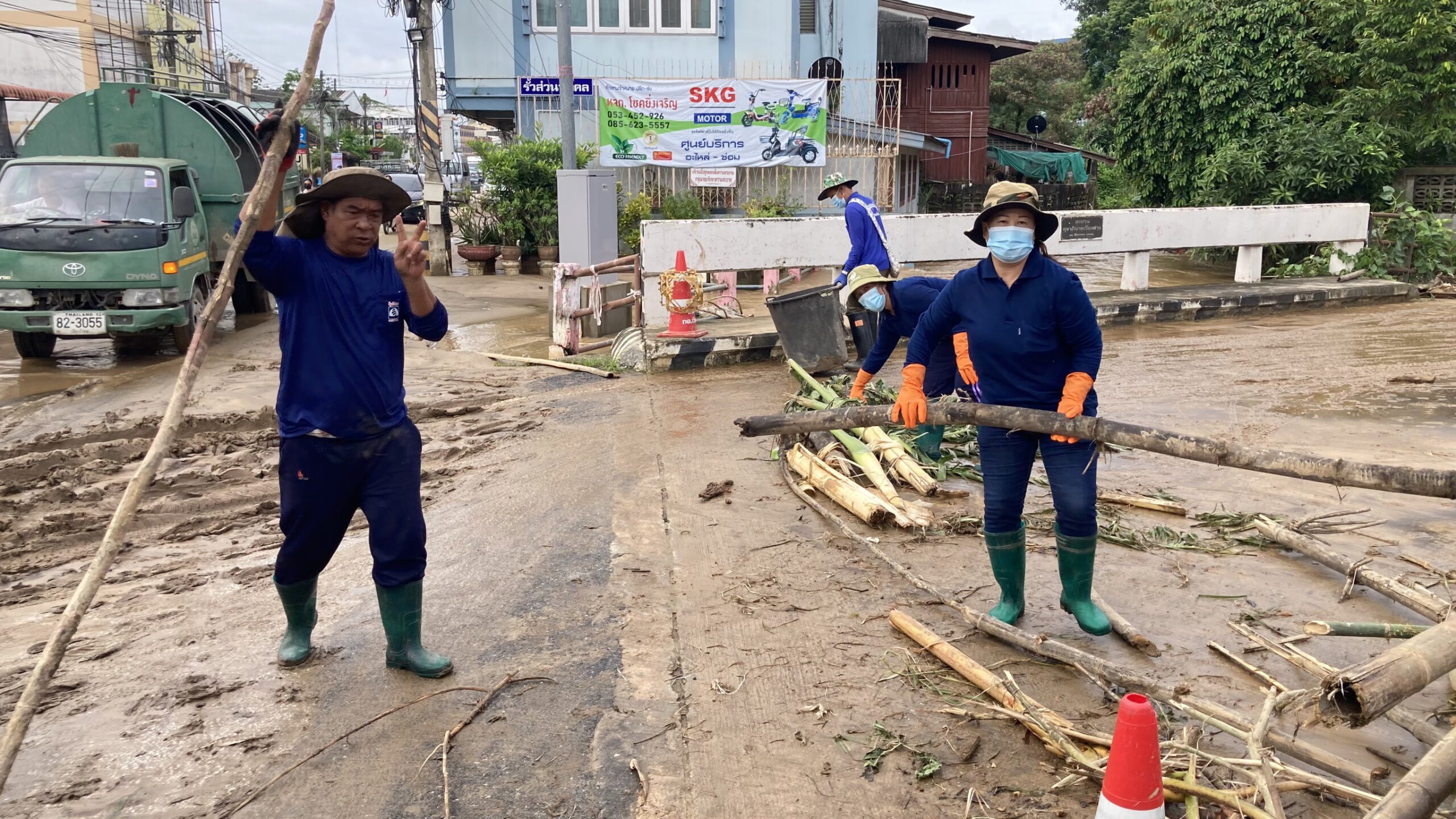 ในช่วงเช้าน้ำลดลงในบางพื้นที่แต่บางพื้นที่ยังท่วมขังเพราะระบายไม่ทันและในลำน้ำลำห้วยยังมีระดับน้ำเต็มฝั่งอยู่ ทั้งหน่วยงาน อบต เทศบาล ก็ได้ระดมเจ้าหน้าที่เข้าทำความสะอาดจุดที่อันตรายก่อนเพื่อจะได้ให้การสัญจรไปมาได้สะดวกสบายปลอดภัยต่อประชาชนผู้ใช้ถนนหนทาง ในถนนหลวง 107-1089 นั้นใช้ได้แล้ว จะมีน้ำขังบางช่วงรถเล็กมอเตอร์ไชค์ผ่านได้ จะให้สะดวกปลอดภัยให้ผู้สัญจรใช้ถนนบายพาส เพราะน้ำแห้งหมดแล้ว การช่วยเหลือในส่วนของราชการก็จะรอให้น้ำแห้งเพื่อสำรวจอย่างละเอียด หน่วยงานเกี่ยวข้องพร้อมให้การช่วยเหลือ ชาวบ้านก็ออกมาทำความสะอาดก่อนน้ำจะลดเพื่อสะดวกในการล้าง ส่วนทางราชการก็จะได้ออกช่วยเหลือในวันนี้เหมือนกันแต่จะเป็นในส่วนรวมหลักไปก่อนแล้วถึงจะเข้าช่วยเหลือประชาชนในตรอกซอกซอยต่อไป