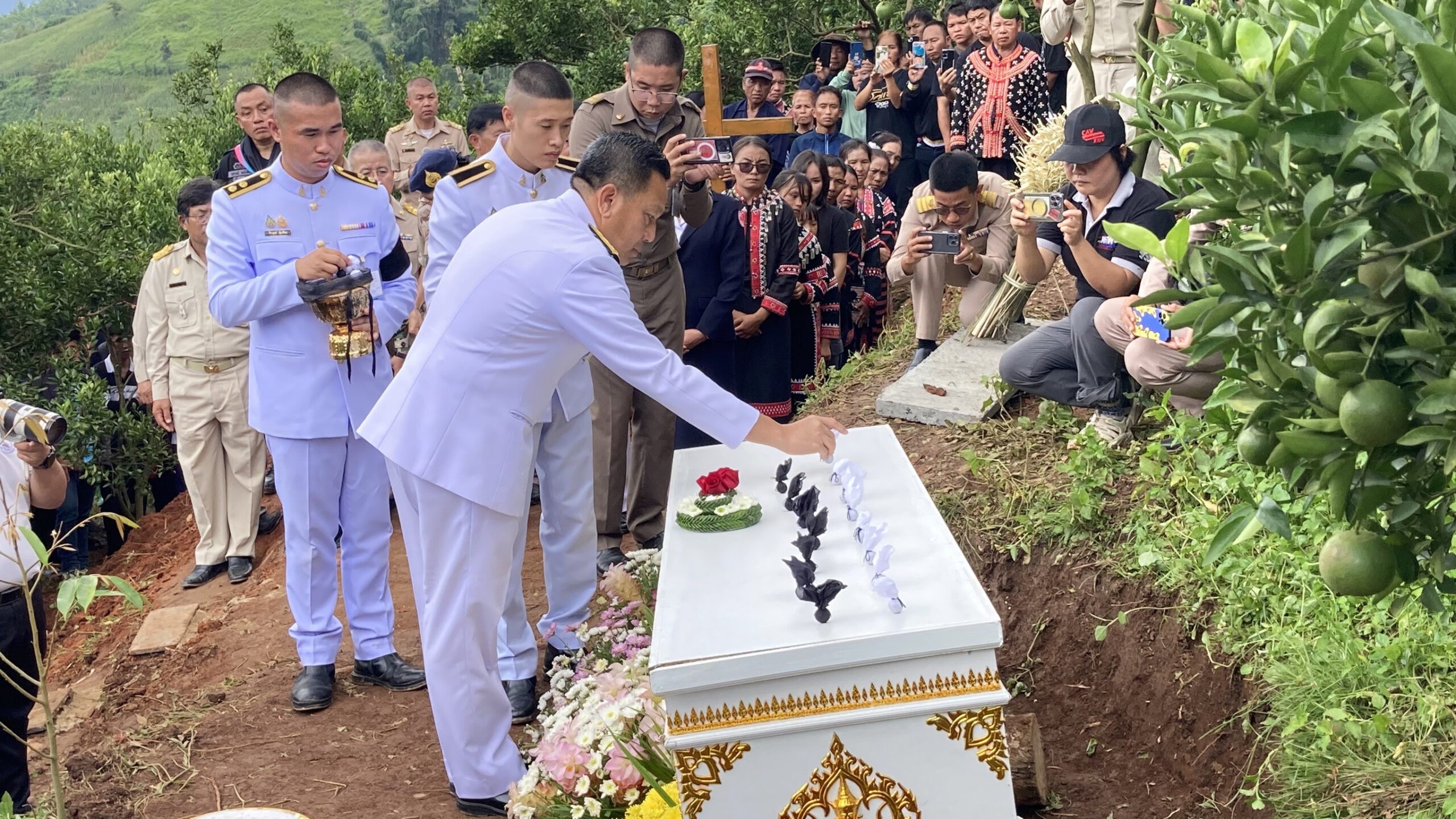 เชียงใหม่ ผู้ว่าฯเป็นประธานวางดินพระราชทานศพผู้ใหญ่บ้านวีรบุรุษดอยแหลม