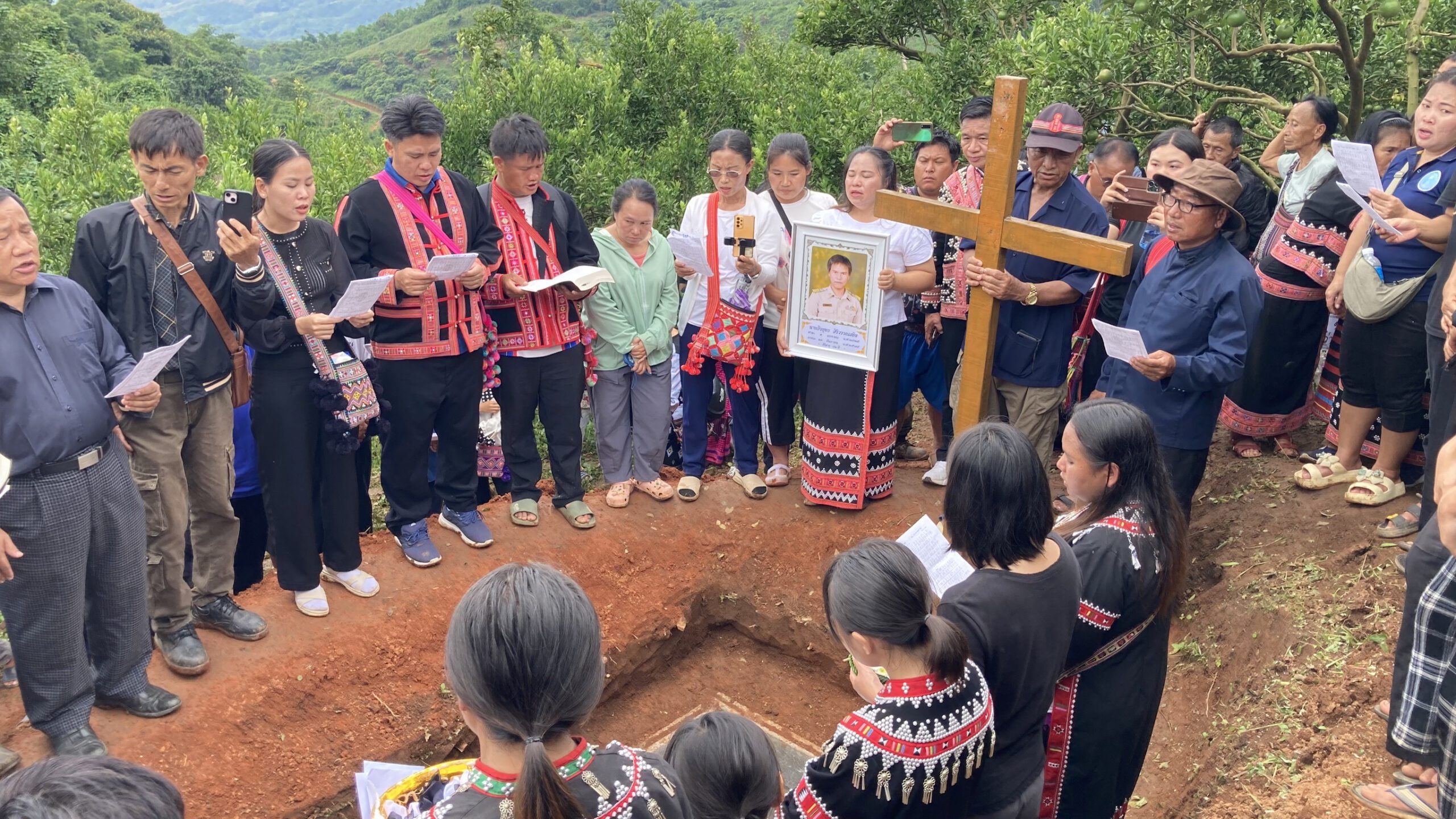 จากนั้นทางชาวบ้านได้ประกอบพิธีตามความเชื่อทางศาสนาคริสต์ ที่เชื่อว่าผู้วายชนได้ไปอยุ่กับพระเจ้า แล้ว มีชาวบ้านกำนันผู้ใหญ่บ้าน อสม ส่วนราชการ ทหารพราน เจ้าหน้าที่อุทยานแห่งชาติผ้าห่มปก อส แม่อาย ฝ่ายปกครอง ตำรวจภูธรแม่อายฯ มาร่วมในพิธีฝังศพในวันนี้