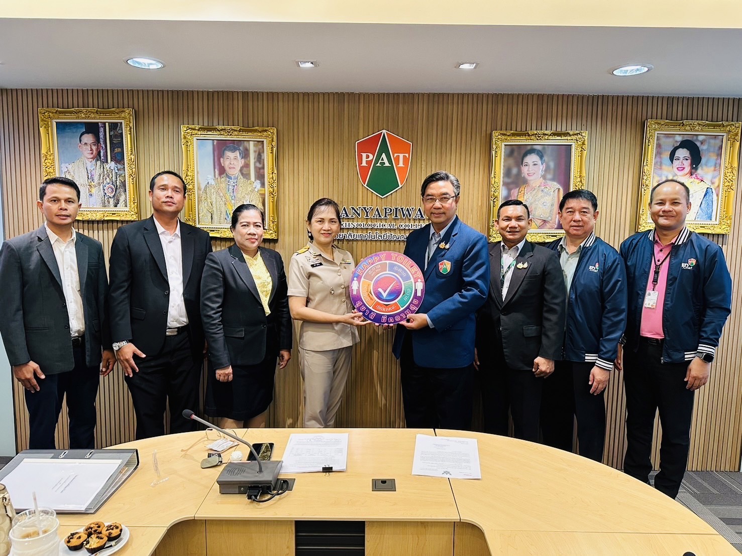 ดร.รุจิรา ฟูเจริญ ผู้อำนวยการสำนักงานอาชีวศึกษาจังหวัดนนทบุรี ในฐานะประธานกรรมการพร้อมด้วยคณะกรรมการติดตาม ประเมินผล”โครงการสุขาดี มีความสุข“ แจ้งผลการประเมินวิทยาลัยเทคโนโลยีปัญญาภิวัฒน์ที่ผ่านเกณฑ์การประเมิลผล โดยนายวิเชียร เนียมน้อม ผุ้แทนผู้รับใบอนุญาตและผู้อำนวยการวิทยาลัยเทคโนโลยีปัญญาภิวัฒน์ พร้อมด้วย ดร.ฉัชร์ภิมุก อภินันท์โชติสกุล ผู้อำนวยการกลยุทธ์การศึกษาและพัฒนาธุรกิจ , นายอำนาจ อ้วนเจริญ ผู้อำนวยการสำนักกิจการนักเรียน นักศึกษา และนายวรเชษฐ์ ธรรมวงศ์ ผู้อํานวยการสำนักวิชาการ ให้การต้อนรับ ดร.รุจิรา ฟูเจริญ ได้มอบป้ายสัญลักษณ์ผลการผ่านการประเมิน”โครงการ สุขาดี มีความสุข “