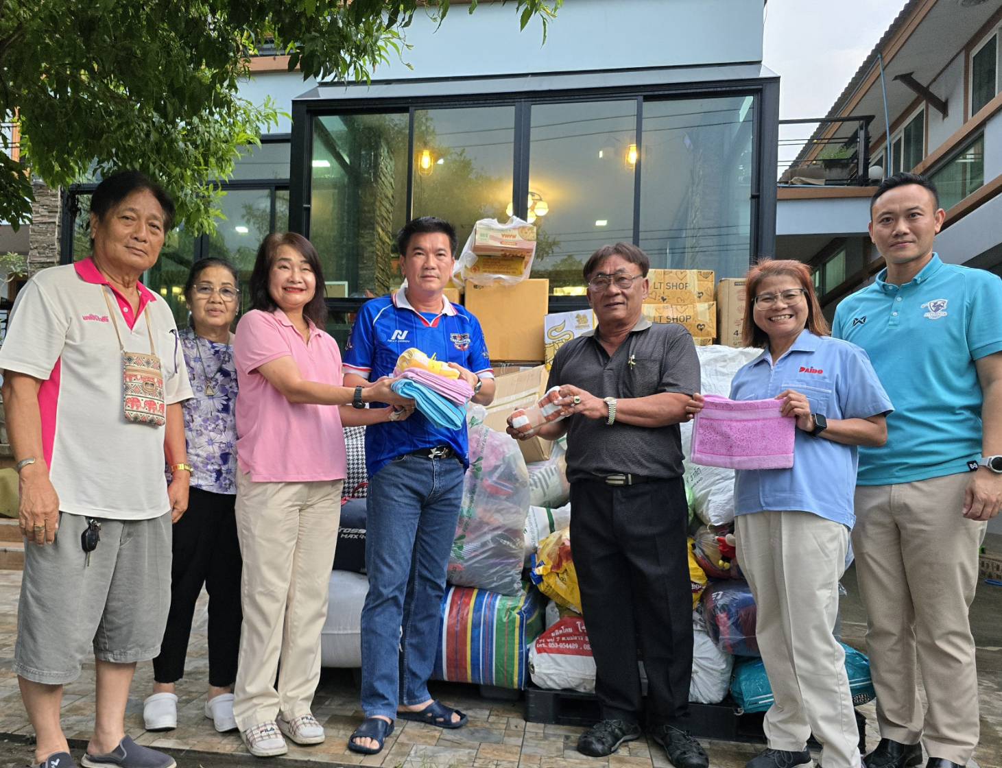 โดยจะออกเดินทางไปมอบเสื้อผ้าใน วันที่ 21 กันยา โดยจะไปมอบให้ประชาชนตามหมู่บ้าน โดยให้ กำนัน ผู้ใหญ่ แต่ละหมู่บ้าน มาคอยรับเพื่อไปแจกจ่ายกัน ให้ทั่วถึงกัน