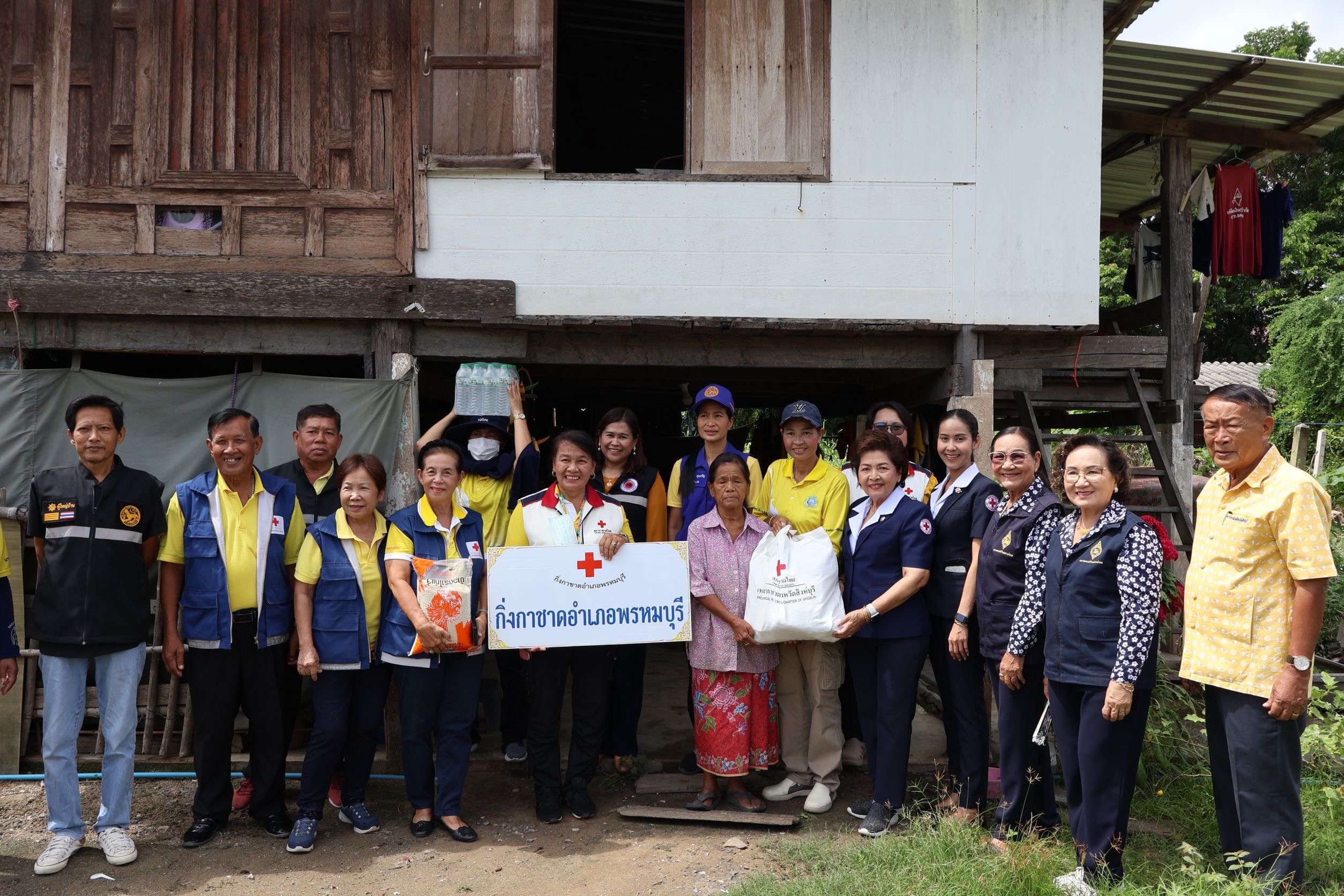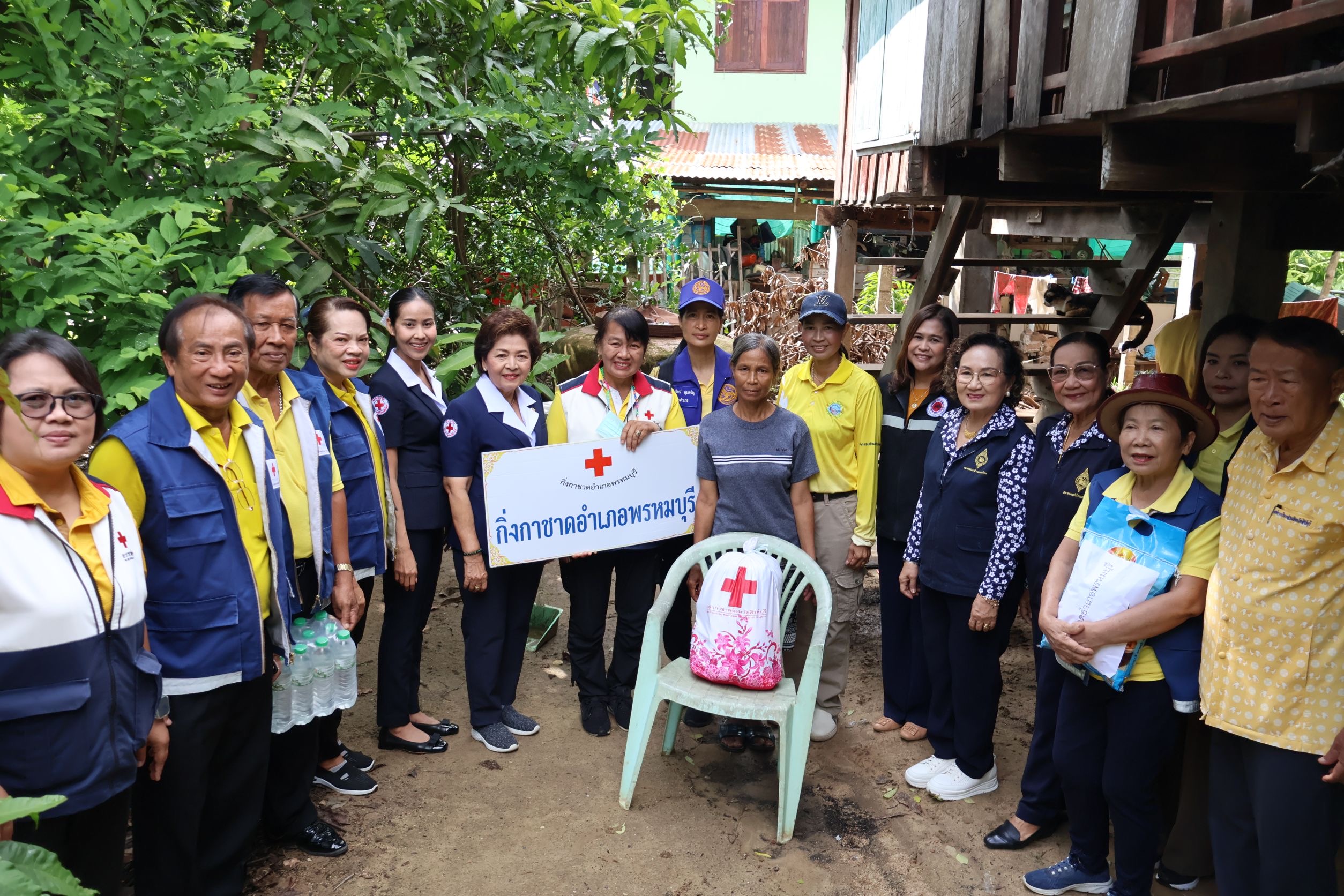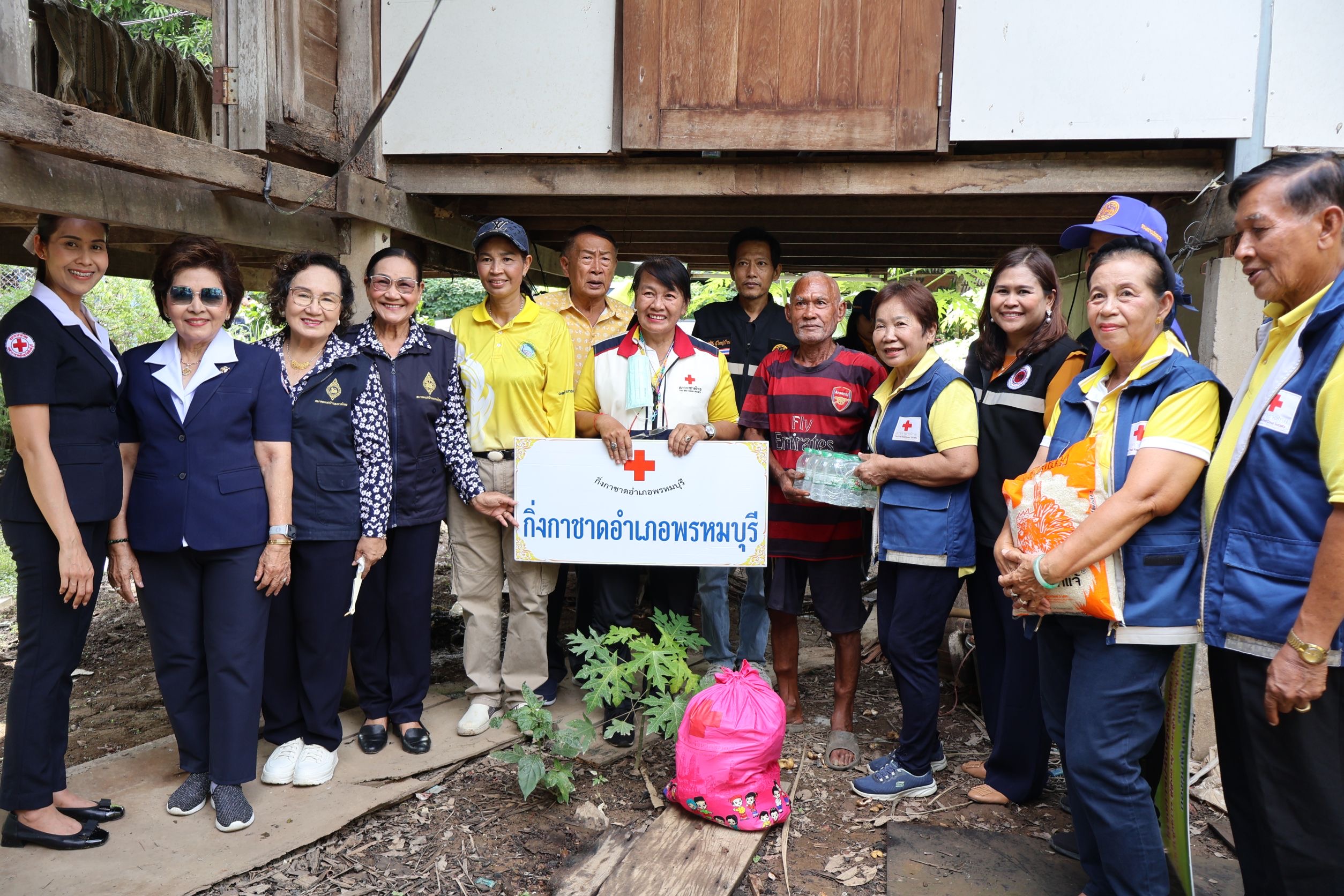 ทั้งนี้ เหล่ากาชาดจังหวัดสิงห์บุรี มอบเครื่องอุปโภค บริโภค รายละ 1 ชุด
