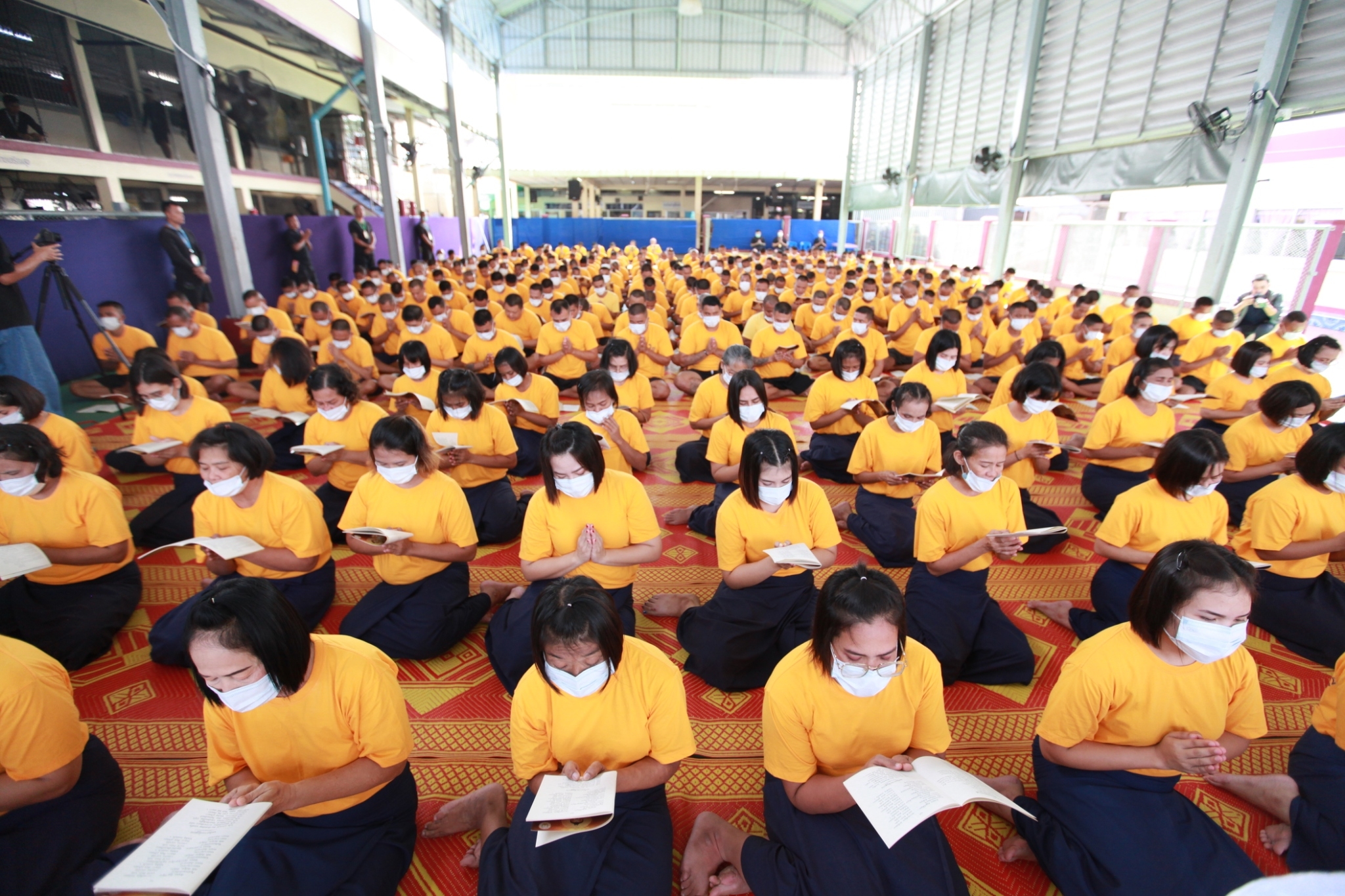 หลวงพี่น้ำฝน พร้อมคณะสงฆ์ นำข้าราชการ เจ้าหน้าที่ ผู้ต้องขัง เรือนจำอำเภอธัญบุรี ร่วมกิจโครงการสวดมนต์ถวายในหลวง ร.10