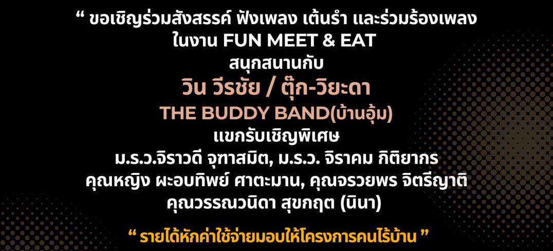 ”เรามาร่วมสนุกอย่างมีความสุข และได้ทำบุญด้วยกันนะครับ“ วิน วีรชัย กล่าวทิ้งท้าย