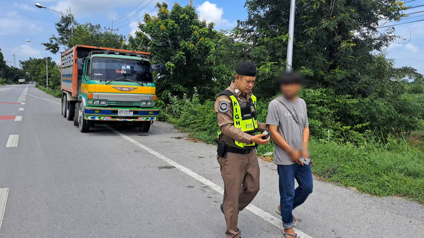 สุพรรณบุรี ตำรวจทางหลวงเข้มตรวจจับรถบรรทุกทำหินร่วงหล่นเจอคนขับพกยาบ้ามาเสพ