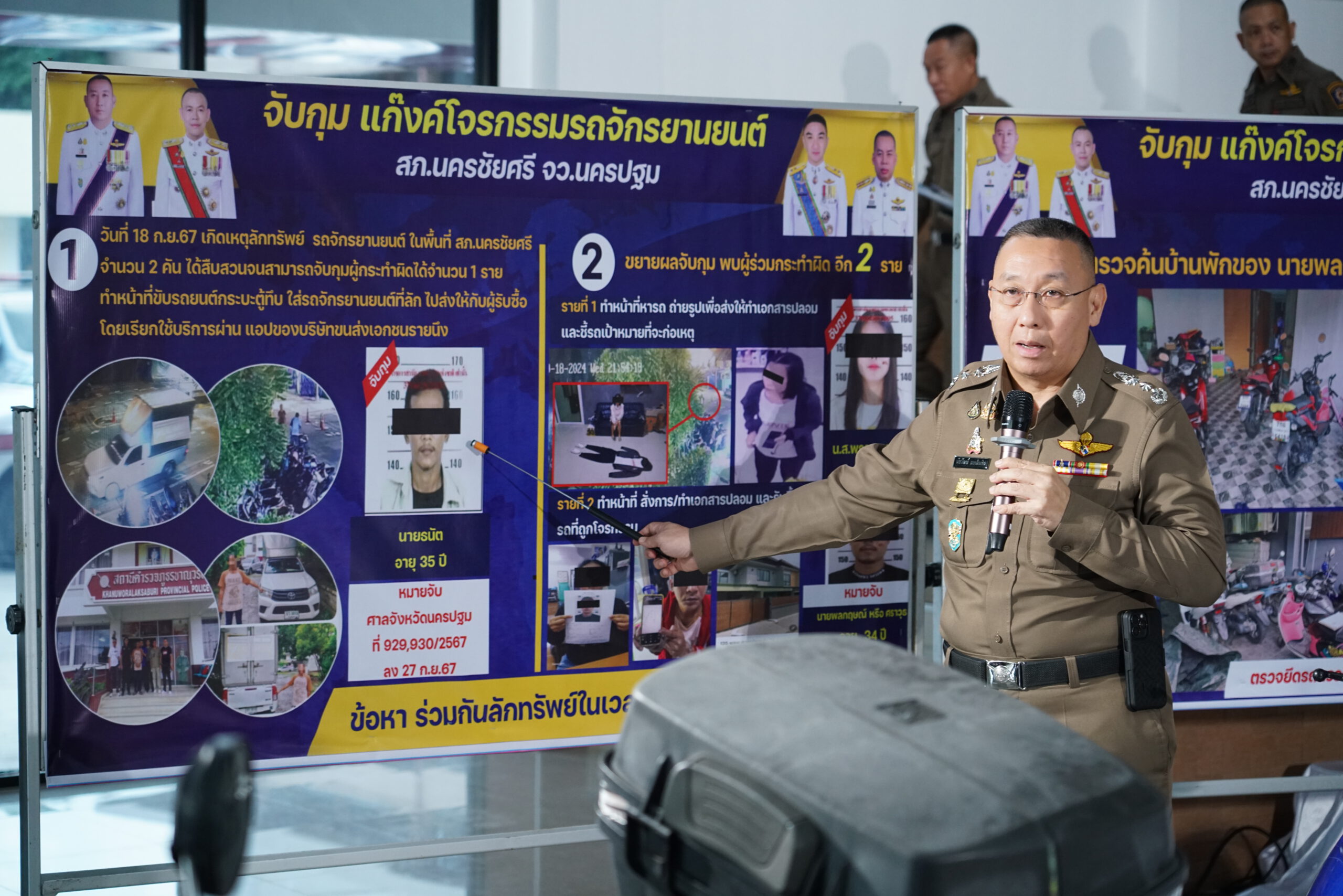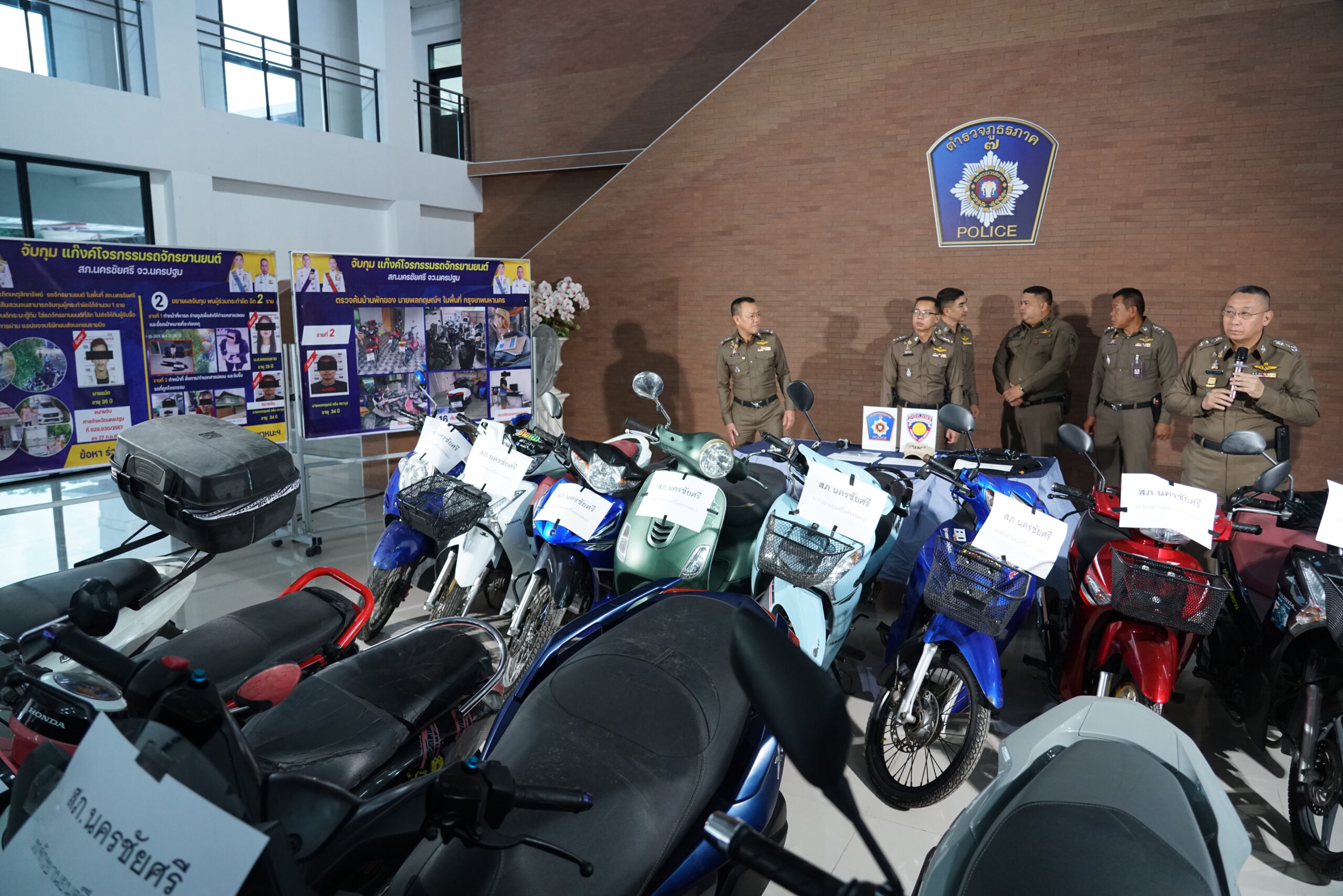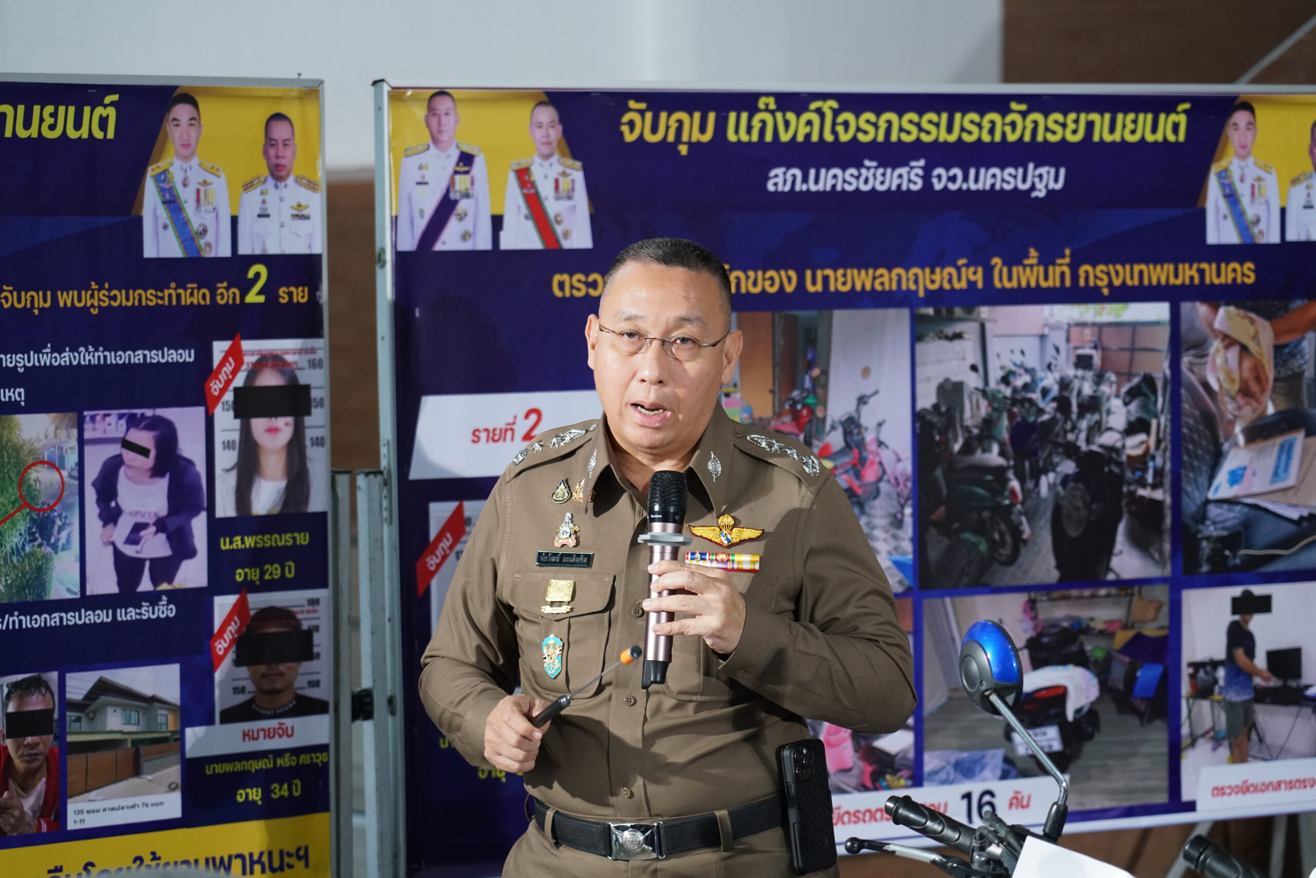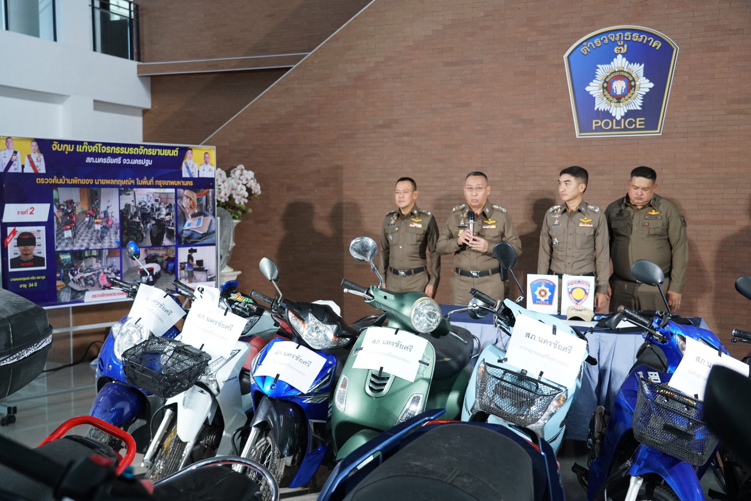 นครปฐม ตำรวจภาค7แถลงข่าวจับแก๊งค์ลักรถจยย.ได้16คัน ขายออนไลน์