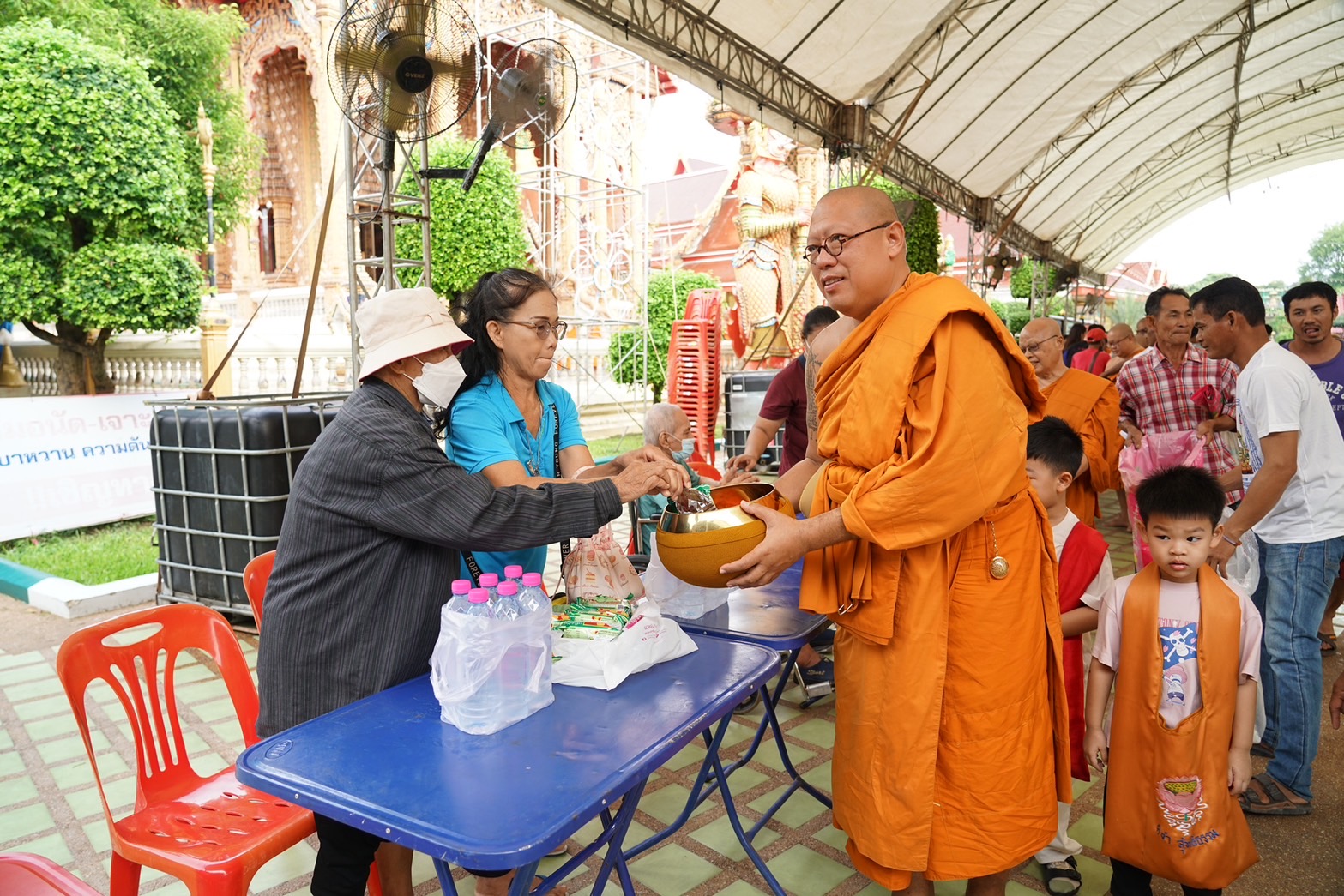 โดยพิธีในช่วงเช้า พระครูปลัดสิทธิวัฒน์ นำคณะสงฆ์วัดไผ่ล้อมประกอบพิธีทางพระพุทธศาสนา เจริญพระพุทธมนต์ บทธัมมจักกัปปวัตตนสูตร และให้โอวาทแก่คณะสงฆ์และพุทธศาสนิกชนที่เข้ามาร่วมพิธี โดยให้ความหมายของการสวดเจริญพระพุทธมนต์บทดังกล่าว เพื่อเป็นพุทธบูชา ธรรมบูชา และสังฆบูชา ถวายแด่องค์สมเด็จพระสัมมาสัมพุทธเจ้า และองค์เทพเทวดา เพื่อให้มาร่วมอนุโมทนา และให้พุทธศาสนิกชนได้ร่วมสืบสานประเพณีอันดีงาม จากนั้นได้นำคณะสงฆ์ออกบิณฑบาต ท่ามกลางญาติโยมที่เข้ามาร่วมกันใส่บาตรอย่างเนืองแน่นในวันนี้