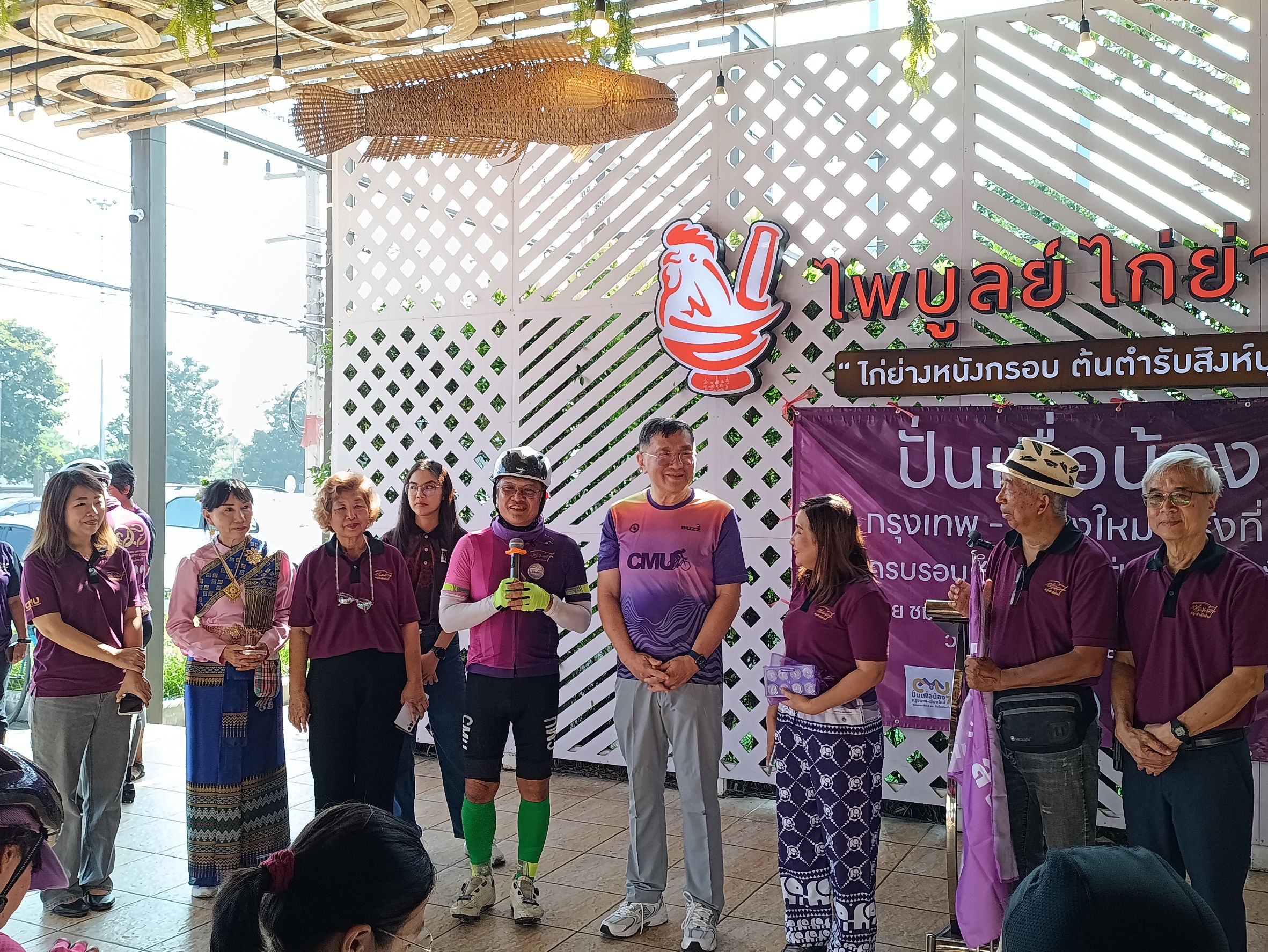 วันที่ 10 พฤศจิกายน 2567 เวลา 9.30 น.นายแพทย์พงษ์นรินทร์ ชาติรังสรรค์ ประธานชมรมศิษย์เก่ามหาวิทยาลัยเชียงใหม่จังหวัดสิงห์บุรีพร้อมรองนายแพทย์สาธารณสุขจังหวัดสิงห์บุรี และคณะศิษย์เก่ามหาวิยาลัยเชียงใหม่จังหวัดสิงห์บุรี ให้การต้อนรับ คณะนักปั่นจักรยานปั่นเพื่อน้อง กรุงเทพฯ – เชียงใหม่ ครั้งที่ 7 “ครบรอบ 60 ปี มช. ปั่นปิ๊กบ้านกั๋น”แวะเช็คพ้อยท์ ที่ 2 ณ ร้านไพบูลย์ไก่ย่าง โดยคณะศิษย์เก่ามหาวิยาลัยเชียงใหม่จังหวัดสิงห์บุรีได้มอบเงินบริจาคสมทบทุนจำนวน 42,000 บาท บรรยากาศเต็มไปด้วยความอบอุ่นพูดคุยกันแบบพี่น้องที่ไม่ได้เจอกันนาน พร้อมส่งกำลังใจให้ภารกิจสำเร็จลุล่วงจากนั้นได้ถือธงร่วมปล่อยจักรยานมุ่งหน้าสู่ถนนสายเอเชียไปทางจังหวัดชัยนาทต่อไป