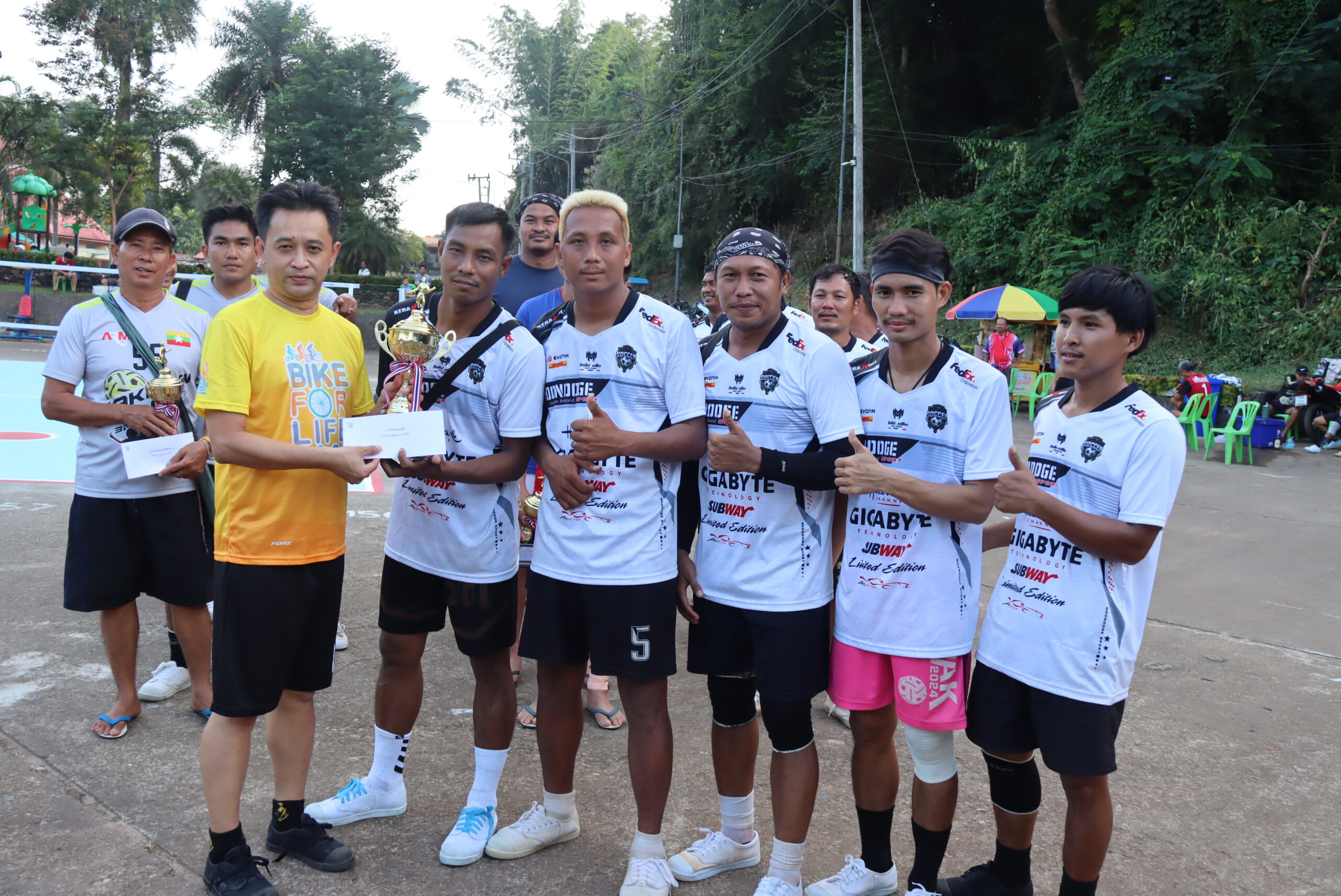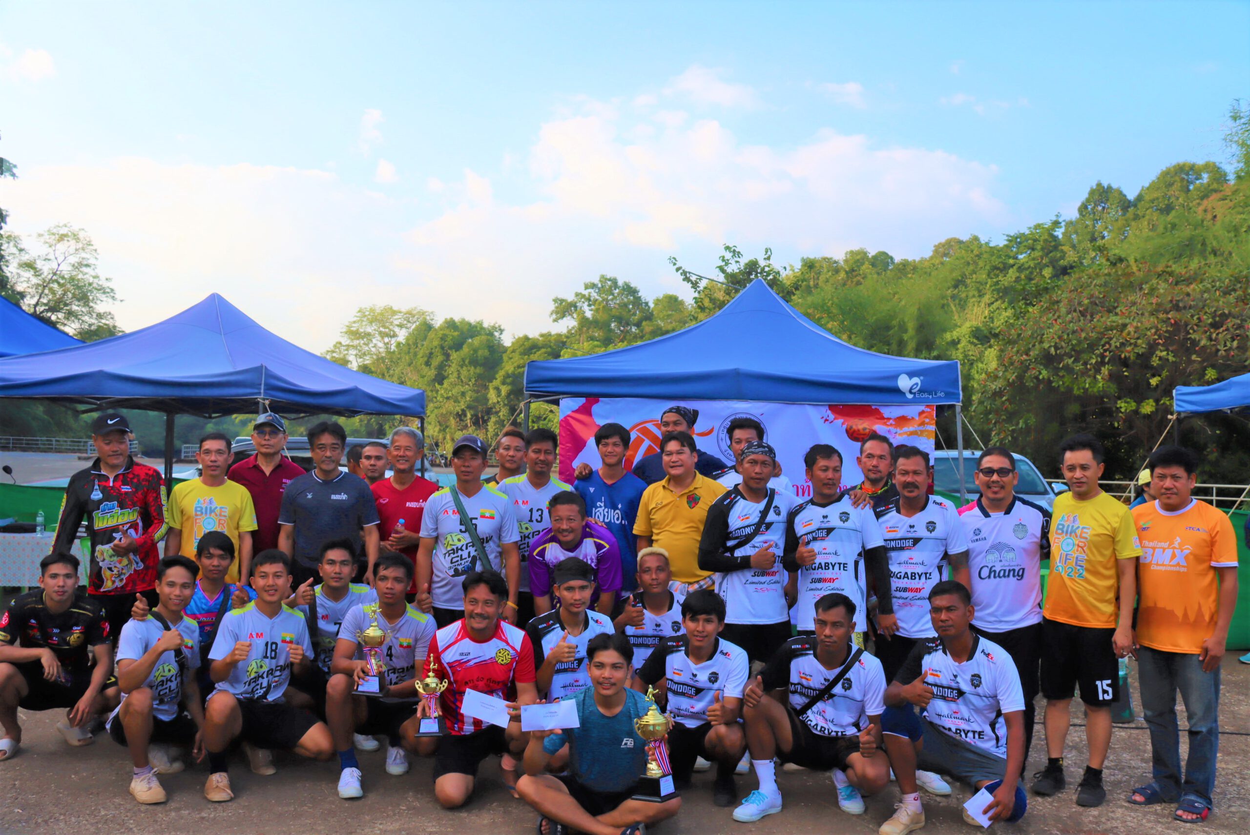 กาญจนบุรี เทศบาลตำบลทองผาภูมิจัดแข่งขันกีฬาท้องถิ่น กีฬาเซปักตะกร้อ รุ่นประชาชนทั่วไปชาย