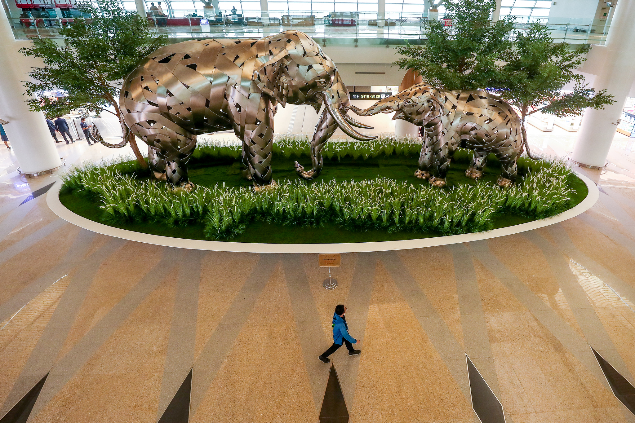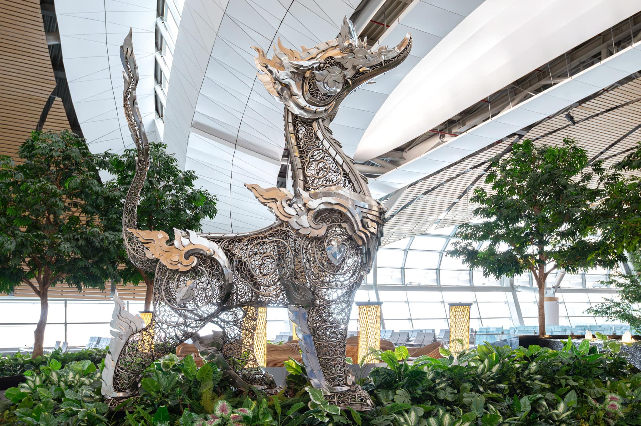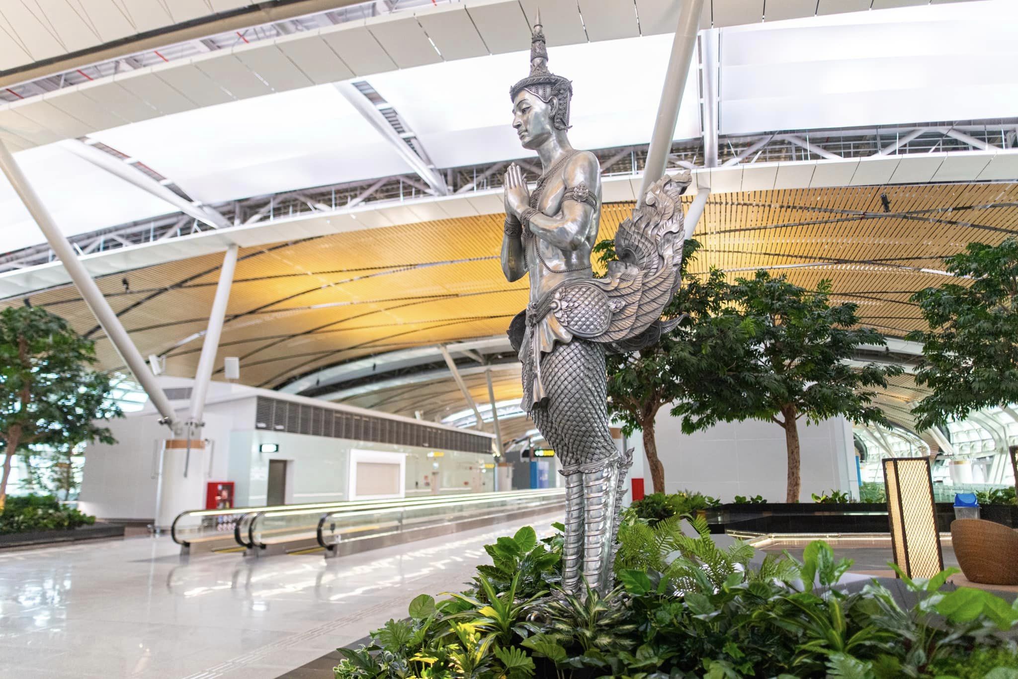 นายสุริยะ กล่าวต่ออีกว่า ขณะเดียวกัน ภายในชั้น 3 ของอาคารฯ ได้รับการออกแบบให้เป็นสวนตกแต่งด้วยสัตว์หิมพานต์ ตามคติความเชื่อไทยแต่โบราณ อาทิ กินนร กินรี เหมราช และหงส์สา ส่วนชั้น 2 ซึ่งเป็นพื้นที่สำหรับผู้โดยสารขาเข้า ได้ออกแบบเป็นสวนสัญจรที่จัดแสดงงานภูมิทัศน์ผสมผสานกับศิลปวัฒนธรรมของไทย เช่น หุ่นละครเล็ก หนังใหญ่ หัวโขน และว่าวไทย เป็นต้น