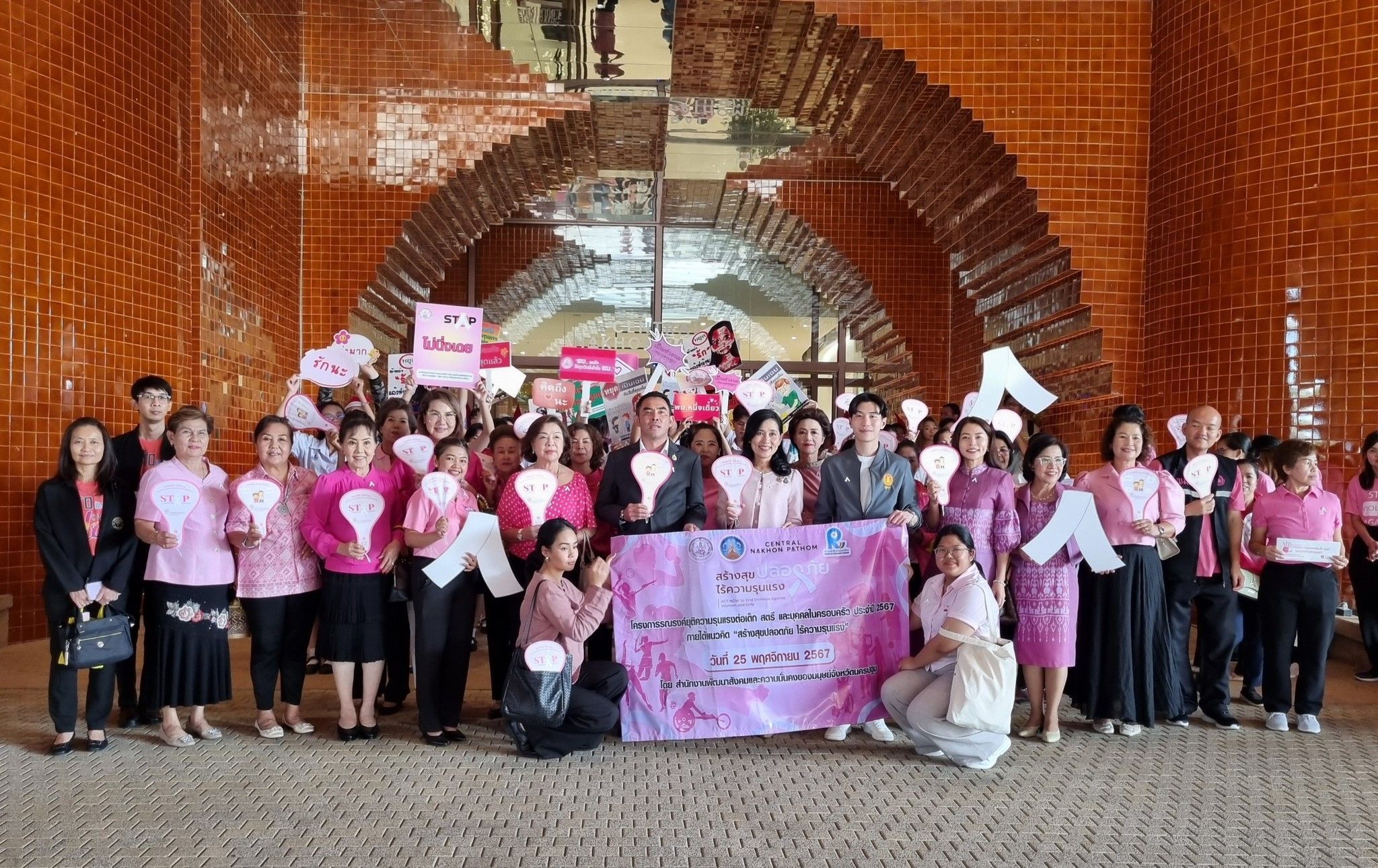 จังหวัดนครปฐม จัดกิจกรรมรณรงค์และประชาสัมพันธ์ สร้างสุขปลอดภัย ไร้ความรุนแรง พร้อมเดินรณรงค์ยุติความรุนแรงต่อเด็ก สตรี และบุคคลในครอบครัว