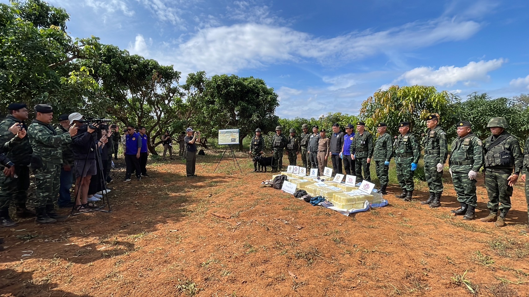 ลักษณะแบกกระสอบขนาดใหญ่ ชุดปฏิบัติการจึงแจ้งเตือนให้หยุดเพื่อขอทำการตรวจค้น แต่บุคคลดังกล่าวเมื่อเห็นและทราบว่าเป็น ทหาร ได้ทำการทิ้งสัมภาระ แล้ววิ่งหนีและทำการหลบหนีโดยอาศัยความมืดและความชำนาญในเส้นทางสามารถหลบหนีไปได้ ชุดปฏิบัติการดังกล่าวจึงวางกำลังเข้าควบคุมพื้นที่ และตรวจสอบพื้นที่โดยรอบขั้นต้นตรวจพบเป็นกระสอบปุ๋ยดัดแปลงเป็นเป้สะพายหลัง จำนวน ประมาณ 13 เป้ ต่อมาเมื่อเวลา 0530 วันที่26 พฤศจิกายน 2567 ชุดปฏิบัติการได้ตรวจสอบพื้นที่โดยรอบ ตรวจพบ กระสอบปุ๋ยดัดแปลงเป็นเป้สะพายหลัง จำนวน 13 เป้ ภายในบรรจุยาเสพติดให้โทษประเภท 1 (ยาบ้า) เป้ละ 200,000 เม็ด รวม 2,600,000 เม็ด ลักษณะหีบห่อบรรจุประทับตราสัญลักษณ์ 999 ดาว 5 ดวง สีน้ำเงิน