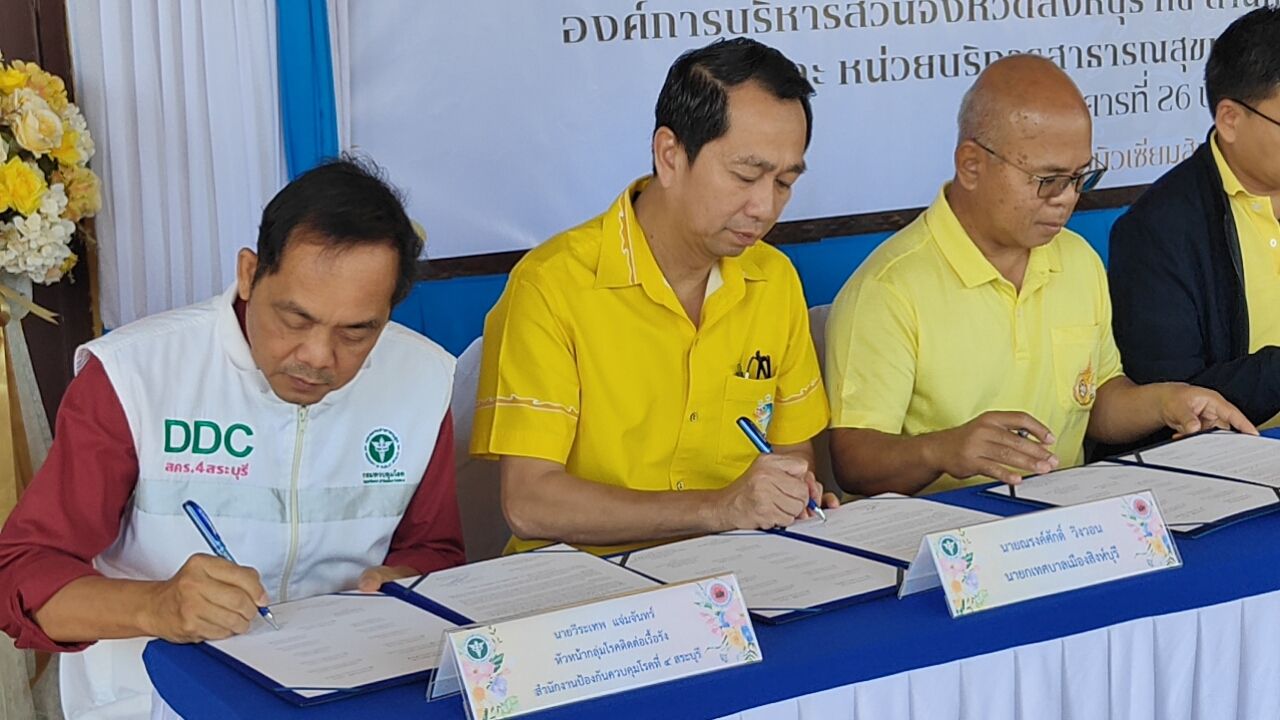 สิงห์บุรี อบจ.จัดพิธีลงนามบันทึกข้อตกลงความร่วมมือการคัดกรองวัณโรคเชิงรุกด้วยรถเอกซเรย์เคลื่อนที่