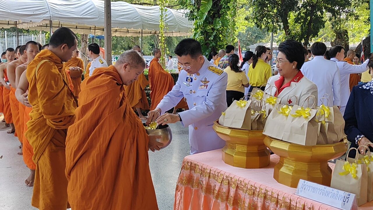 วันที่ 5 ธันวาคม 2567 เวลา 07.30 น. ณ อาคารเอนกประสงค์สนามกีฬาจังหวัดสิงห์บุรี นายสุเมธ ธีรนิติผู้ว่าราชการจังหวัดสิงห์บุรีพร้อมนางวาสนา ธีรนิตินายกเหล่ากาชาดจังหวัดสิงห์บุรี หัวหน้าศาล รองผู้ว่าราชการจังหวัดสิงห์บุรี หัวหน้าส่วนราชการ ทหาร ตำรวจ และข้าราชการ ร่วมประกอบพิธีสวดพระพุทธมนต์และ ทำบุญตักบาตรข้าวสารอาหารแห้ง พระสงฆ์และสามเณร 89 รูป ถวายเป็นพระราชกุศล เนื่องในวันคล้ายวันพระราชสมภพพระบาทสมเด็จพระบรมชนกาธิเบศร มหาภูมิพลอดุลยเดชมหาราช บรมนาถบพิตร วันชาติ และวันพ่อแห่งชาติ ต่อจากนั้น นายสุเมธ ธีรนิติผู้ว่าราชการจังหวัดสิงห์บุรีเป็นประธานในพิธีวางพานพุ่มดอกไม้ถวายราชสักการะน้อมรำลึกในพระมหากรุณาธิคุณพระบาทสมเด็จพระบรมชนกาธิเบศร มหาภูมิพลอดุลยเดชมหาราช บรมนาถบพิตร วันชาติ และวันพ่อแห่งชาติ 5 ธันวาคม 2567 ตามลำดับ