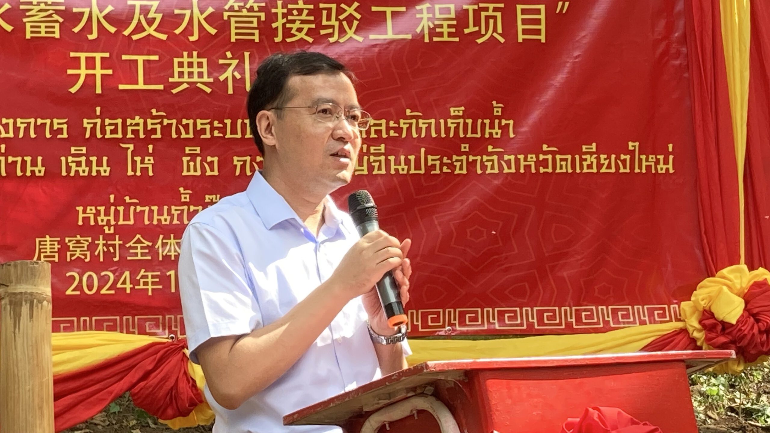 วันนี้ นายเฉิน ไห่ ผิง กงสุลแห่งสาธารณประชาชนจีนประจำจังหวัดเชียงใหม่ ได้กล่าวมอบทุนสร้างที่เก็บน้ำเพื่อแก้ปัญหาภัยแล้งว่า น้ำเป็นสิ่งสำคัญทุกครัวเรือนทุกคนต้องใช้น้ำและเป็นประโยชน์กับทุกคนที่อยู่ในพื้นที่ทางประเทศจีนยังห่วงพี่น้องชาวไทยยูนาน และจะคอยช่วยเหลือในสิ่งที่จำเป็นต่อการดำรงชีพ เมื่อมีอ่างเก็บน้ำก็ขอให้ช่วยกันดูแลรักษาและใช้ให้เกิดประโยชน์สูงสุด และเด็กๆเยาวชนก็ให้ศึกษาเล่าเรียนและที่สำคัญให้รักประเทศไทยให้มากๆ ส่วนนายปธิกร เอี่ยมสะอาด นายอำเภอไชยปราการ จังหวัดเชียงใหม่ ได้กล่าวขอบคุณทางกงสุลจีนที่เข้ามาช่วยเหลือชาวบ้านบนดอยในครั้งนี้ และได้ร่วมกันช่วยดัดเหล็กทำโครงสร้างอ่างเก็บน้ำ พร้อมกับช่วยกันผสมปูนคอนกรีตเพื่อทำการเทคานเพื่อเป็นฐานในการก่อสร้างสร้างอ่างเป็นปฐมฤกษ์ ในวันนี้ คาดการณ์ว่าจะแล้วเสร็จในเวลาประมาณ 30 วัน โดยใช้ ช่าง และแรงงานชาวบ้านผัดเปลี่ยนกันมาทำโดยมีค่าจ้างค่าแรงให้ ในสี่หย่อมบ้านมี 446 ครอบครัว 2,600 กว่าคน ที่จะมีน้ำกินน้ำใช้ไม่กลัวแล้งแล้ว และถ้าป่าสมบูรณ์น้ำก็จะไม่เหือดแห้งก็จะมีน้ำใช้อย่างถาวรต่อไป