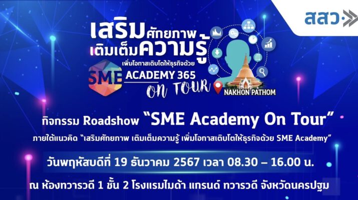 สสว. พร้อมจัดกิจกรรม Roadshow “SME Academy On Tour” ครั้งที่ 11 จ.นครปฐม ชวนเรียนรู้ธุรกิจฟรี ! กับ academy 365 เสริมศักยภาพ SME เติบโตในยุคดิจิทัล