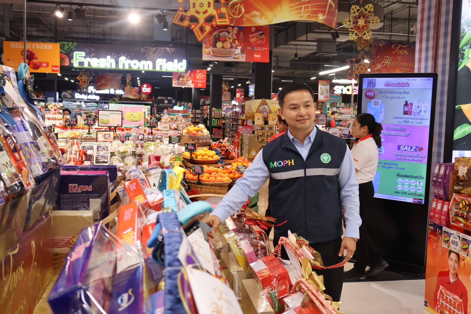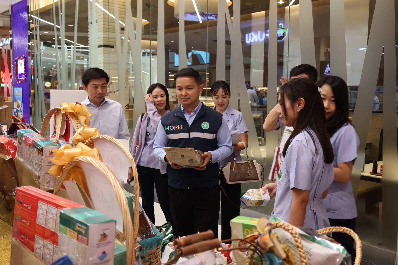 กาญจนบุรี สสจ.สุ่มตรวจกระเช้าของขวัญ เนื่องในเทศกาลปีใหม่ 2568 แนะนำผู้ประกอบการจัดสินค้าและผลิตภัณฑ์แสดงรายการให้ชัดเจน ด้านผู้บริโภคให้เลือกซื้อกระเช้าของขวัญที่มีสัญลักษณ์โภชนาการทางเลือกสุขภาพ Healthier Choice