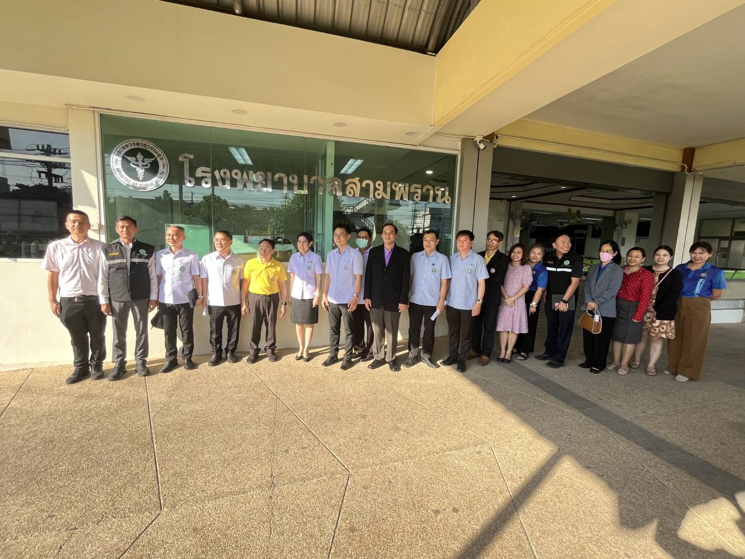 เพื่อความพร้อมของโรงพยาบาลสามพรานในการใช้พื้นที่เพื่อจัดตั้งศูนย์แพทย์แผนไทย เขตสุขภาพที่5 โดยมี นายแพทย์ทินกร ชื่นชม ผู้อำนวยการโรงพยาบาลสามพราน เป็นผู้นำเสนอข้อมูล และวางแนวทางการใช้พื้นที่โรงพยาบาลสามพราน ในการจัดตั้งคลินิกบริการการแพทย์แผนไทยและการแพทย์ทางเลือก พร้อมนายแพทย์อำพล เวทะชาติ นายแพทย์ชำนาญการพิเศษ สถาบันการแพพย์ Premium clinic/Thai wellness Destination นายแพทย์กุลธนิต วนรัตน์ ผู้อำนวยสถาบันการแพทย์ทางเลือก และทำข้อตกลงและความร่วมมือในการใช้พื้นที่โรงพยาบาลสามพราน นายแพทย์อำพล เวหะชาติ นายแพทย์ชำนาญการพิเศษ สถาบันการแพทย์แผนไทย นายสุเมธ เที่ยงธรรม นักวิทยาศาสตร์การแพย์ชำนาญการพิเศษ