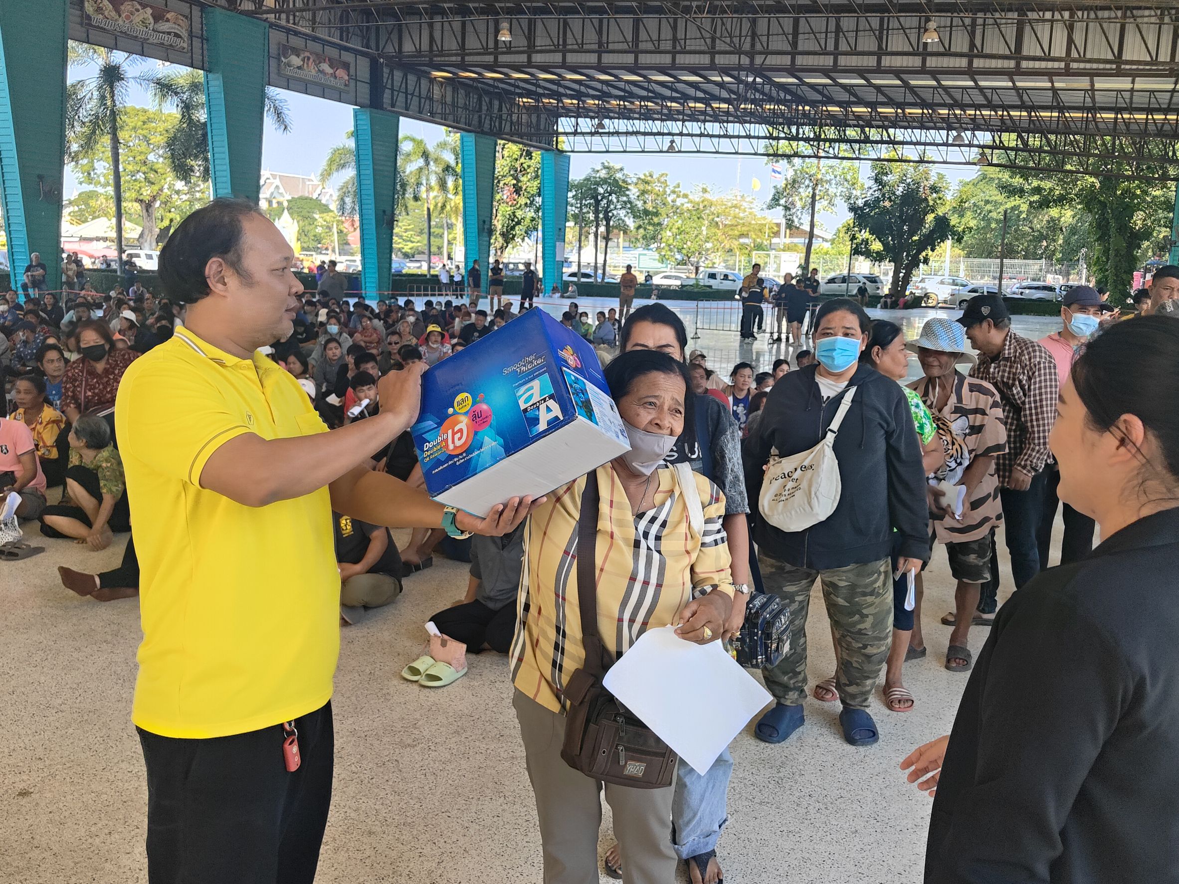 พ่อค้าแม่ค้าในจังหวัดสิงห์บุรีแห่จับสลากขายของฟรีในงานเทศกาลกินปลาครั้งที่ 30
