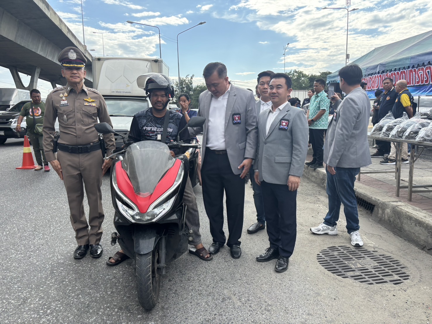 *****หลังจากพิธี นายขจิตเวช แก้วน้อย นายอำเภอบางพลี พ.ต.อ.ไพโรจน์ เพ็ชรพลอย ผกก.สภ.บางพลี ได้มอบหมวกกันน็อคให้กับประชาชนที่สัญจรผ่านไปมาและไม่ได้สวมใส่หมวกกันน็อค พร้อมว่ากล่าวตักเตือน และได้มีการมอบเครื่องดื่มชูกำลังให้กับผู้ขับขี่ ที่สัญจรไปมาหรือกำลังออกนอกจังหวัด