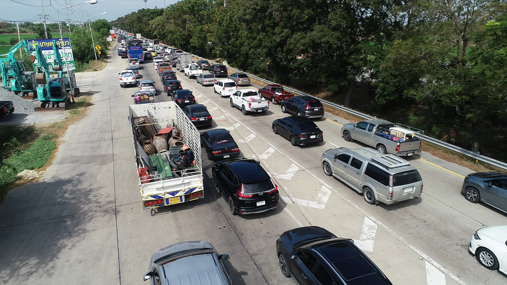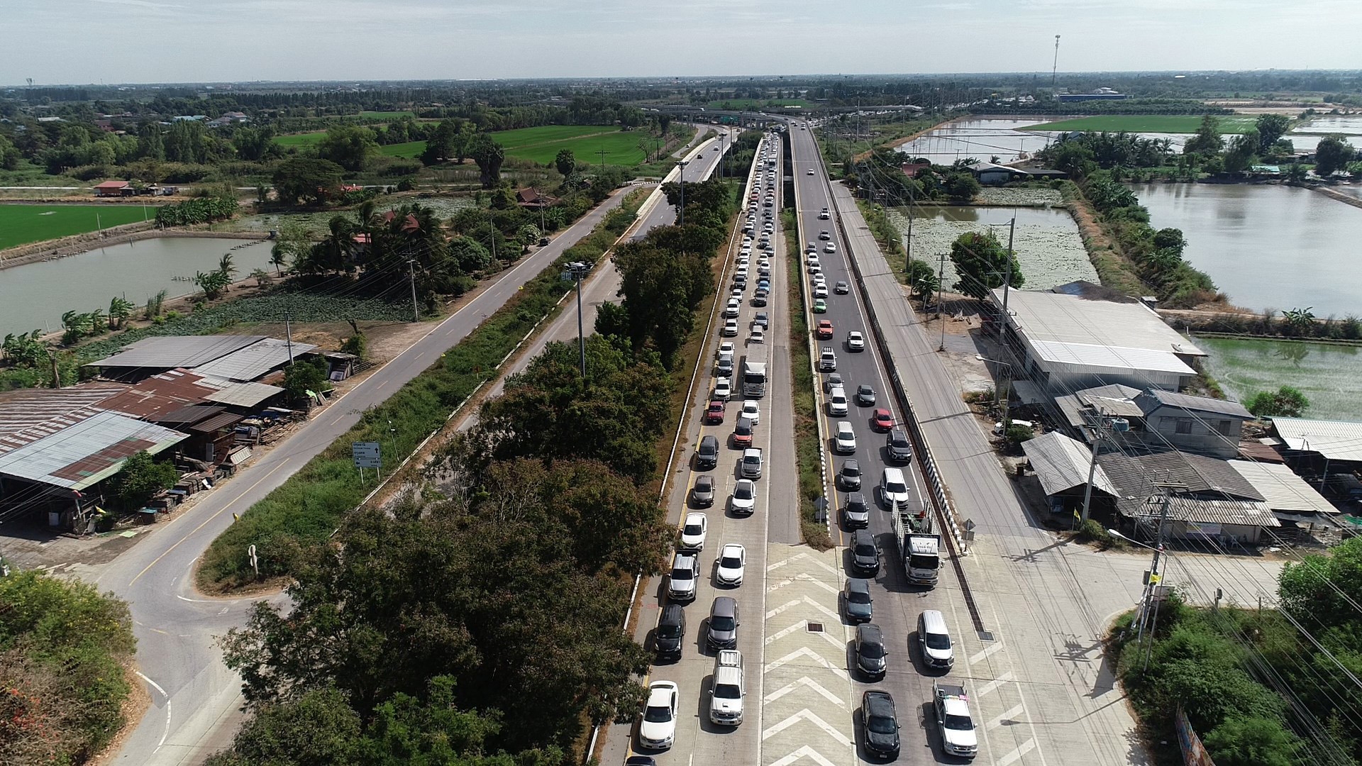 ส่วนบรรยากาศการเดินทางมีประชาชนกำลังเดินทางจากกรุงเทพมุ่งหน้าขึ้นเหนือใช้เส้นทาง 340 ซึ่งมีรถมากการจราจรหนาแน่นทำให้การจราจรติดขัดเป็นบางช่วงโดยเฉพาะสะพานสาลี ถึง สะพานบางยี่หน ที่มีการ ปิดถนนเพื่อซ่อมโดยให้รถวิ่งสวนกันเป็นทางเดียว อย่างไรก็ตามขอให้ประชาชนขับรถด้วยความระมัดระวัง เพื่อความปลอดภัย
