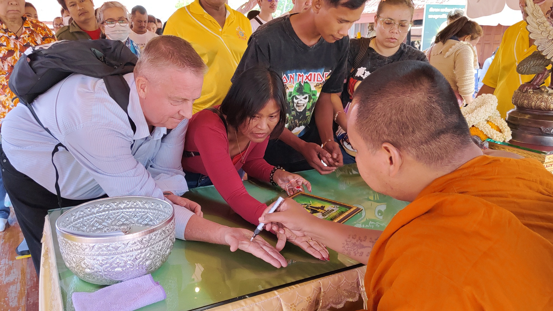 จากนั้นได้ทำการเจิมมือ เปิดดวงเศรษฐี กับครูบาวชิริล ภัททฺมุนี มีทั้งสาธุชนคนไทยและต่างชาติที่เคารพศรัทธา แห่มาเจิมมือเปิดดวงเศรษฐีกันอย่างเนืองแน่น บางคนนำโฉนดที่ดินมาเจิมเพื่อหวังพึ่งบารมีให้ขายได้ไว้ๆ พร้อมกับบูชาเทียนหนุนดวง เพื่อทำการจุดในคืนส่งท้ายปี โดยผู้ลงเจิมมือ เห็นเลข 810 บนฝ่ามือ นอกจากนี้ทางวัดเดิมบาง ยังเปิดให้บรรดาสาธุชนร่วมจองวัตถุมงคลประจำปี 2568 หลวงพ่อแบน – ท้าวเวสหน้าทองคำ ซึ่งได้รับความสนใจจากสาธุชนต่างพากันเดินทางมาจองกันอย่างล้นหลาม