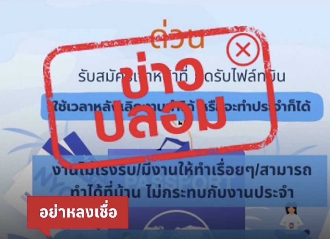 ‼️ แชร์ไป เตือนภัยคนใกล้ตัว AOT รับสมัครเจ้าหน้าที่กดรับไฟลต์บิน รายได้เริ่มต้น 450 บาทต่อวัน? ใครหางานอยู่ต้องสะดุดเมื่อ AOT โพสต์ประกาศในโลกออนไลน์ว่าเปิดรับสมัครเจ้าหน้าที่กดรับไฟลต์บิน รายได้เริ่มต้น 450 บาทต่อวัน บริษัท ท่าอากาศยานไทย จำกัด (มหาชน) ทอท. กระทรวงคมนาคม ได้ชี้แจงว่า ข่าวรับสมัครงานดังกล่าวไม่ได้มีการเผยแพร่มาจาก AOT แต่อย่างใด และ AOT ไม่มีส่วนเกี่ยวข้องกับโฆษณาดังกล่าวใด ๆ ทั้งสิ้น โพสต์ข้างต้นเป็นโพสต์ที่มิจฉาชีพจัดทำขึ้นมา ขอประชาชนอย่าหลงเชื่อ ตรวจสอบโดย บริษัท ท่าอากาศยานไทย จำกัด (มหาชน) กระทรวงคมนาคม