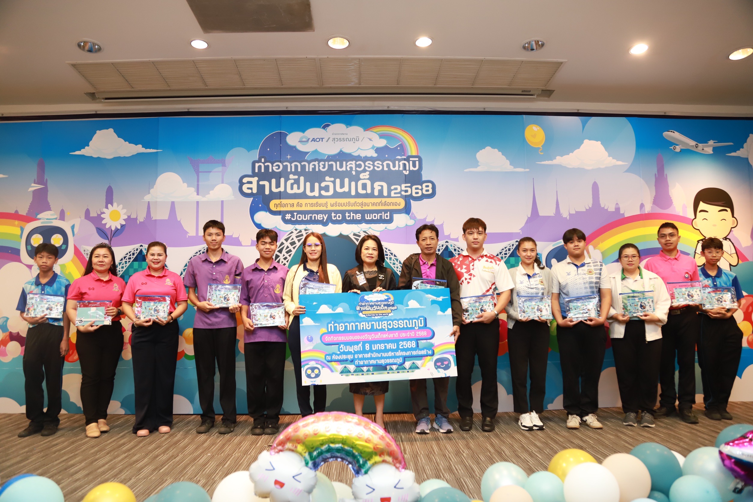 วันที่ 9 มกราคม 2568 ท่าอากาศยานสุวรรณภูมิ (ทสภ.) จัดกิจกรรมมอบของขวัญวันเด็ก เป็นชุดเครื่องเขียน ตราสัญลักษณ์ ทอท. พร้อมแจกน้ำดื่มตราสัญลักษณ์ ทสภ. ให้แก่ หน่วยงานราชการ องค์การบริหารส่วนตำบล สถานศึกษา ศูนย์พัฒนาเด็กเล็ก และตัวแทนเยาวชนจากโรงเรียนต่างๆ ที่อยู่โดยรอบ ทสภ. รวมจำนวน 91 แห่ง เพื่อนำของขวัญไปจัดกิจกรรมวันเด็กแห่งชาติของแต่ละหน่วยงาน โดยมี นางกรรณิการ์ เปรมประเสริฐ รองผู้อำนวยการท่าอากาศยานสุวรรณภูมิ (สายปฏิบัติการ 2) เป็นประธานในพิธี ณ อาคารสำนักงานบริหารโครงการก่อสร้าง ทสภ.