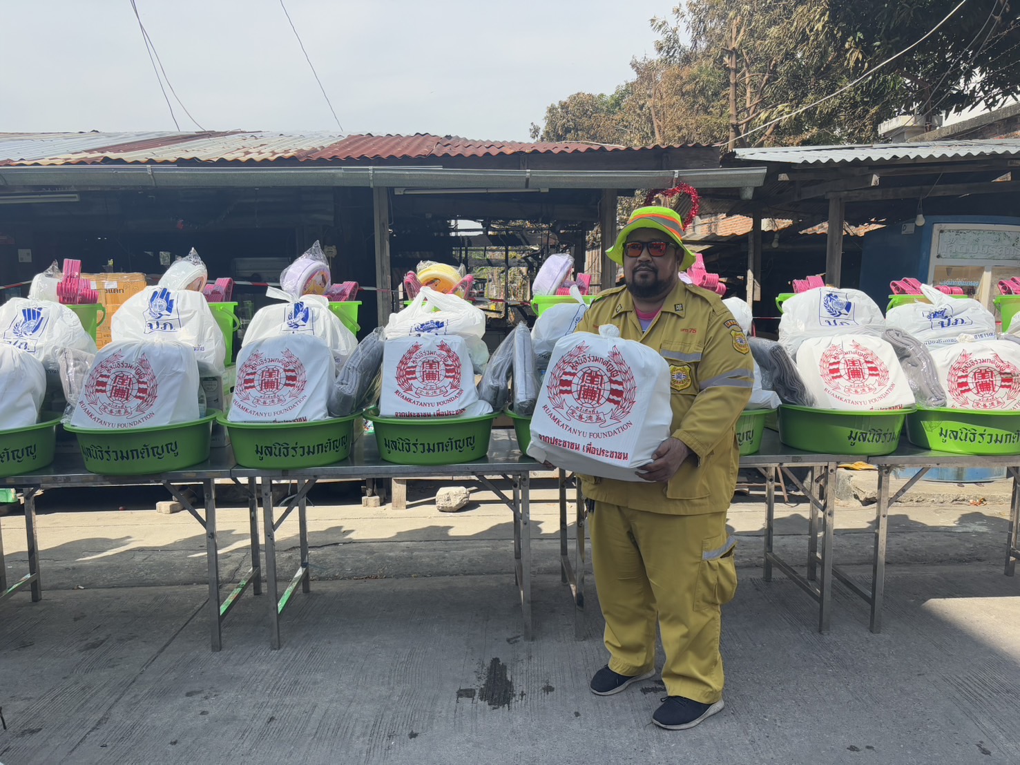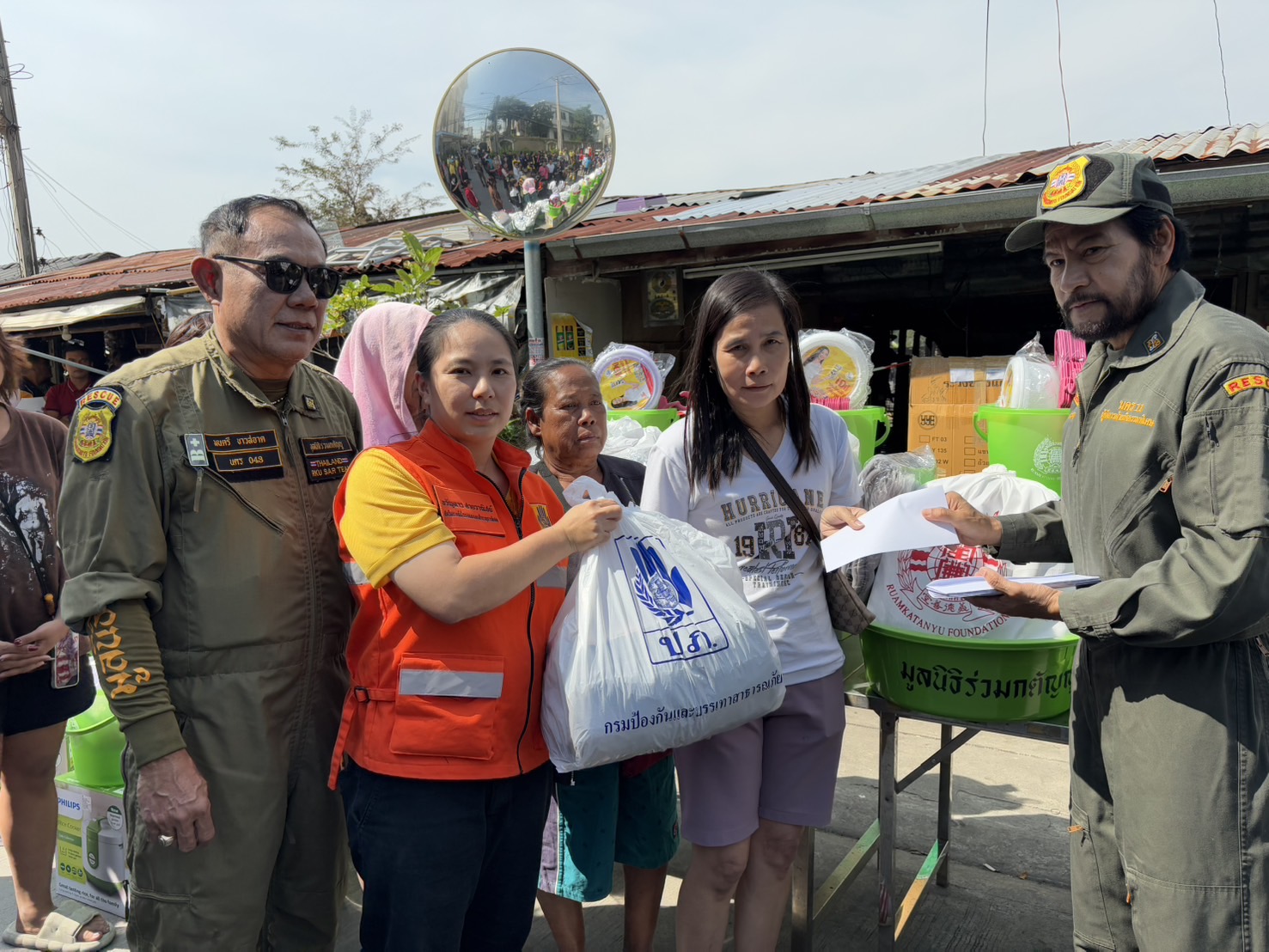 *****ดร.บิณฑ์ บรรลือฤทธิ์ ผู้จัดการฝ่ายกิจกรรมพิเศษมูลนิธิร่วมกตัญญู กล่าวว่า สำหรับการเดินทางมามอบสิ่งของจำเป็นในครั้งนี้ หลังจากที่ทราบข่าวไฟไหม้บ้านพักของผู้ประสบภัยทั้ง 17 ครอบครัว มูลนิธิร่วมกตัญญู โดย ดร.รัตนา สมสกุลรุ่งเรือง ประธานมูลนิธิร่วมกตัญญู มีความห่วงใย จึงมอบหมายให้ตนเองมาเป็นตัวแทนของมูลนิธิร่วมกตัญญู เข้ามาเยี่ยมและให้กำลังใจพร้อมมอบความช่วยเหลือเบื้องต้น ส่วนตนเองได้มอบเงินสดเพื่อสมทบทุนตั้งต้นชีวิต นำไปไว้เป็นค่าใช้จ่ายในการสร้างบ้านพักต่อไป