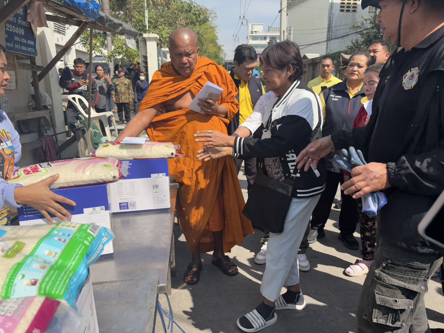 สมุทรปราการ พระครูแจ้ บินฑ์ มอบเงินช่วยเหลือ 17 ครอบครัวเหยื่อไฟไหม้บ้านย่านบางพลี