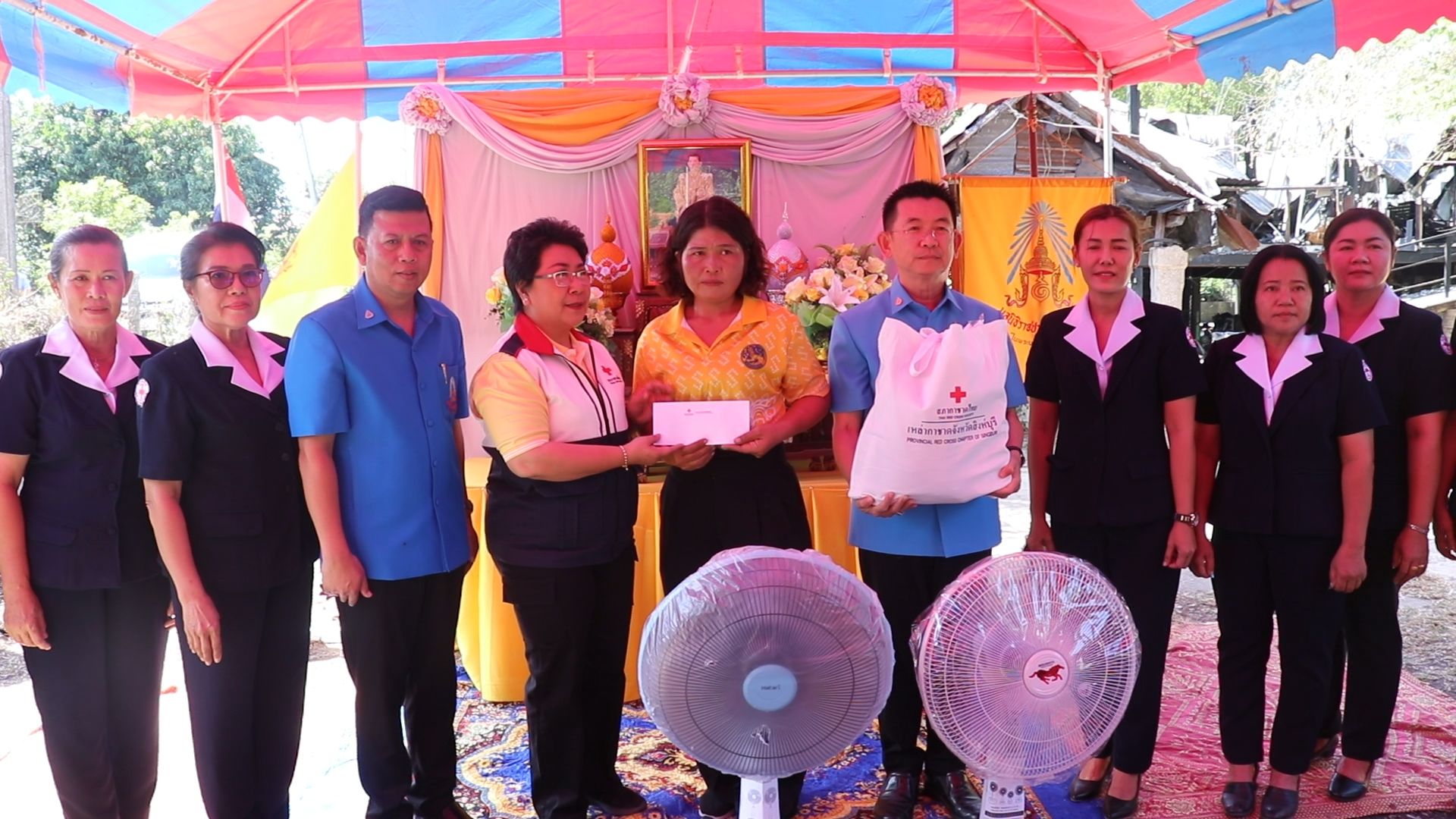 มูลนิธิราชประชานุเคราะห์ประจำจังหวัดสิงห์บุรี มอบสิ่งของพระราชทานช่วยเหลือผู้ประสบอัคคีภัยตำบลท่างาม
