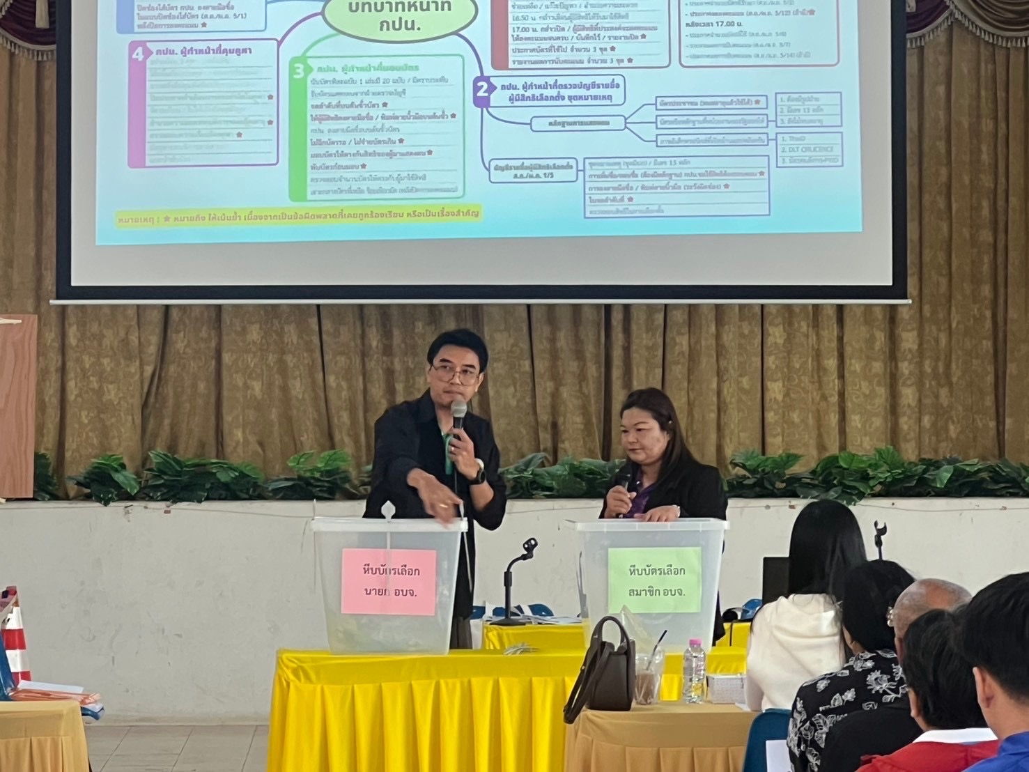 วันที่ 22 มกราคม 2568ณ หอประชุมอำเภอพรหมบุรี จังหวัดสิงห์บุรี โดยคณะกรรมการการเลือกตั้งประจำองค์การบริหารส่วนจังหวัดสิงห์บุรี ร่วมกับ สำนักงานคณะกรรมการการเลือกตั้งประจำจังหวัดสิงห์บุรี และที่ว่าการอำเภอพรหมบุรี จัดการฝึกอบรมเจ้าพนักงานประจำหน่วยเลือกตั้ง ตามโครงการอบรมวิทยากรอำเภอ เจ้าพนักงานผู้ดำเนินการเลือกตั้ง คูณะกรรมการประจำหน่วยเลือกตั้ง และเจ้าหน้าที่รักษาความปลอดภัยที่เลือกตั้ง ในการเลือกตั้งสมาชิกสภาองค์การบริหารส่วนจังหวัดสิงห์บุรี และนายกองค์การบริหารส่วนจังหวัดสิงห์บุรี รุ่นที่ ๒ เขตที่ ๒ ตำบลบ้านแป้ง,ตำบลพลพรหมบุรี จำนวน 99 คน