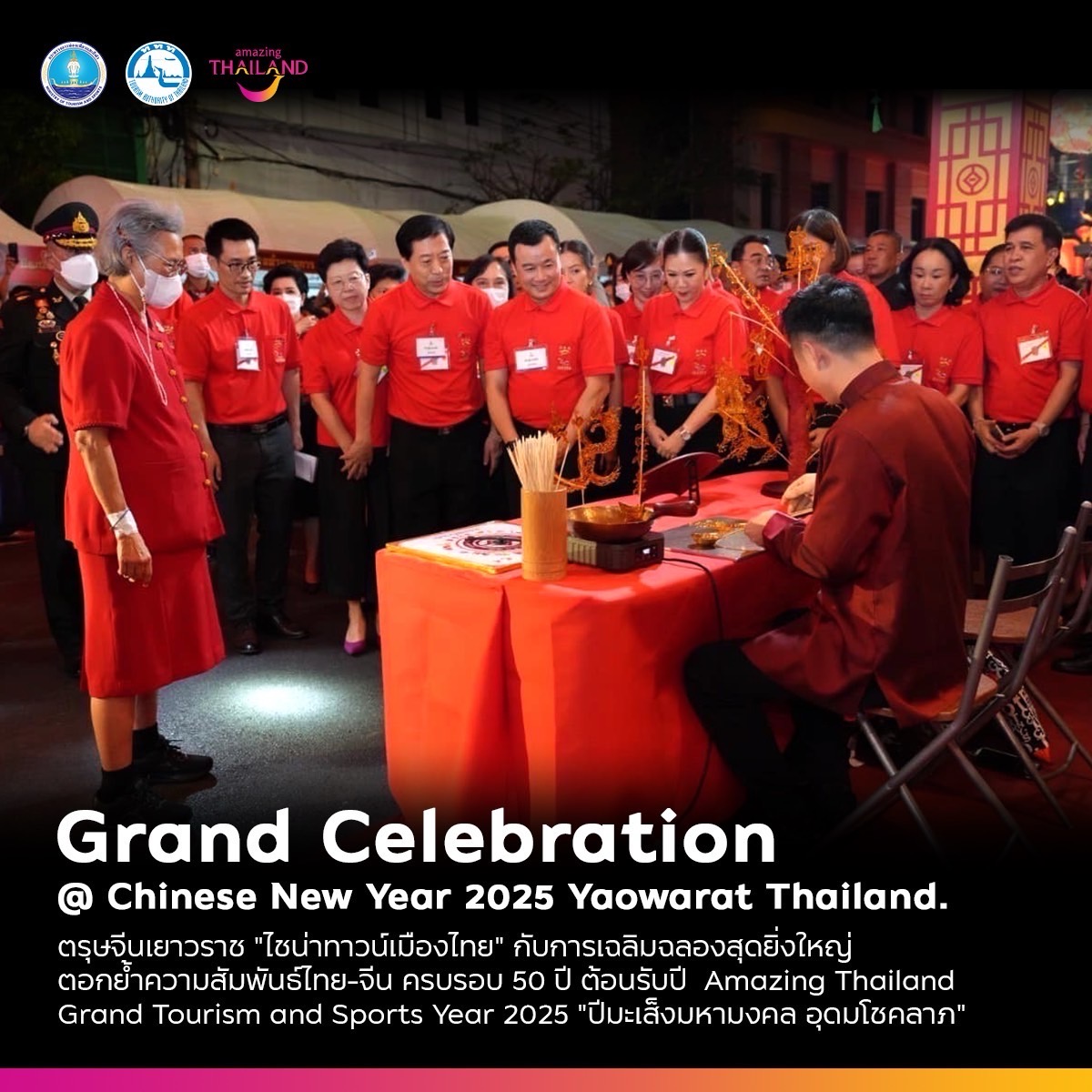 ตรุษจีนเยาวราช “ไชน่าทาวน์เมืองไทย” กับการเฉลิมฉลองสุดยิ่งใหญ่ ตอกย้ำความสัมพันธ์ไทย-จีน ครบรอบ 50 ปี ต้อนรับปี Amazing Thailand Grand Tourism and Sports Year 2025 “ปีมะเส็งมหามงคล อุดมโชคลาภ”